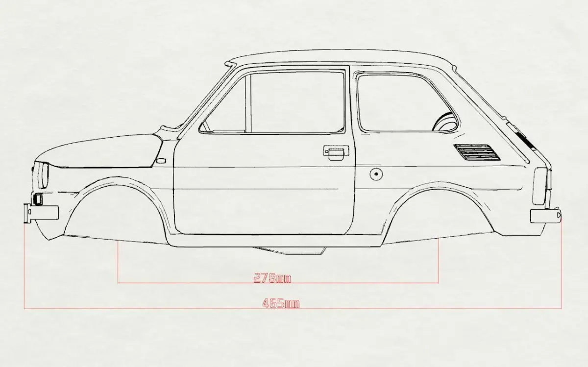 There is the same 3D model of wheelbase 185mmSpecs: Length: 465mm, Width: 200mm, Height: 177 mm Wall thickness: 3.5mm-3.9mm.