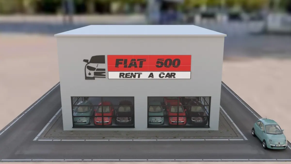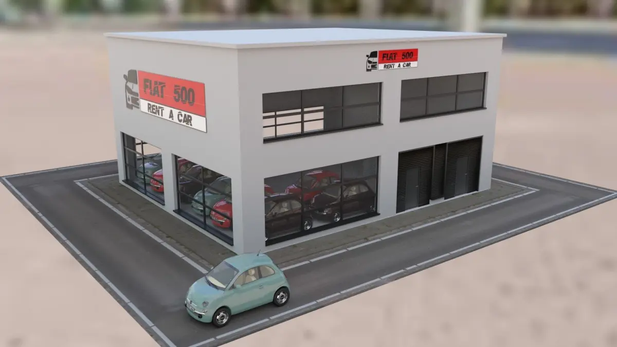 This is a model of Fiat 500 car rental low poly building. This is made with Autodesk Maya 2018, iluminated and rendered in Arnold 2018. The objects contains Uvs and the textures.