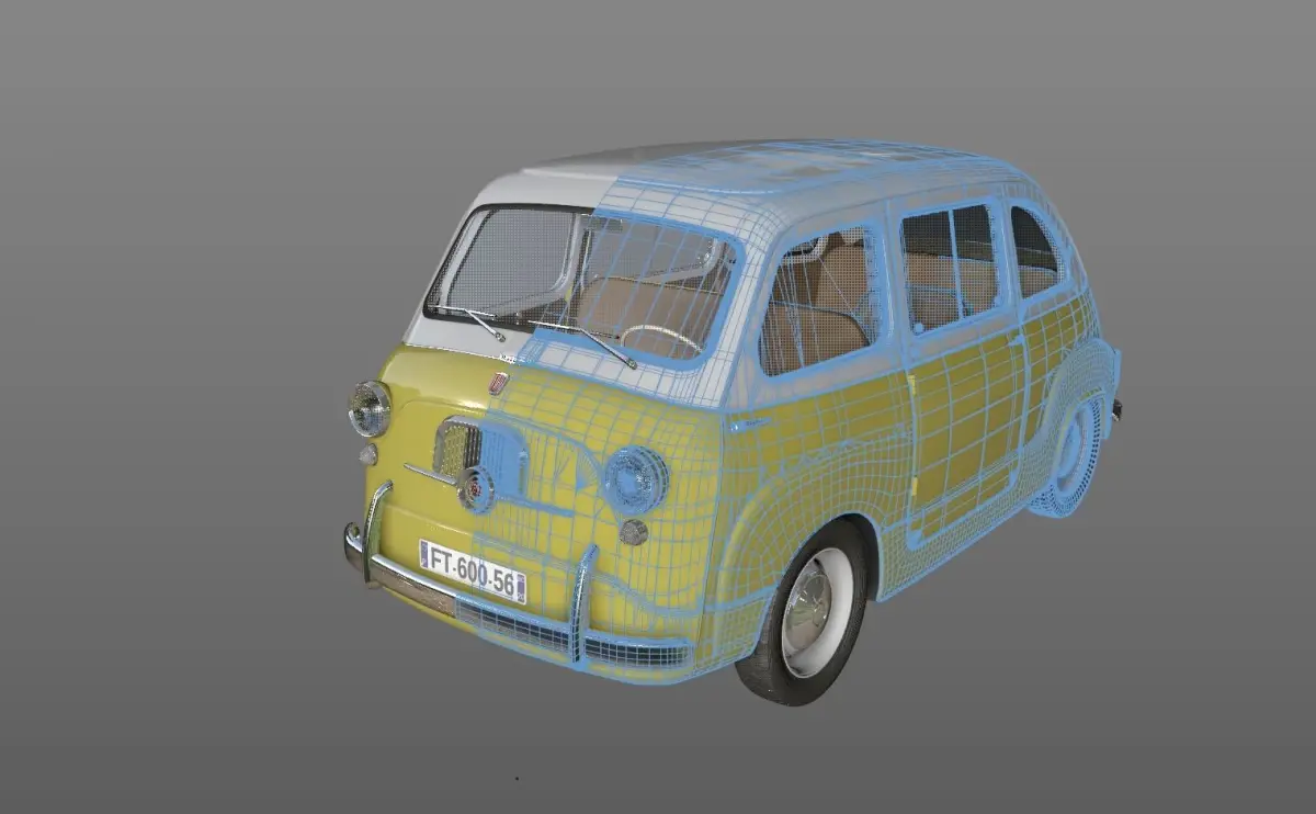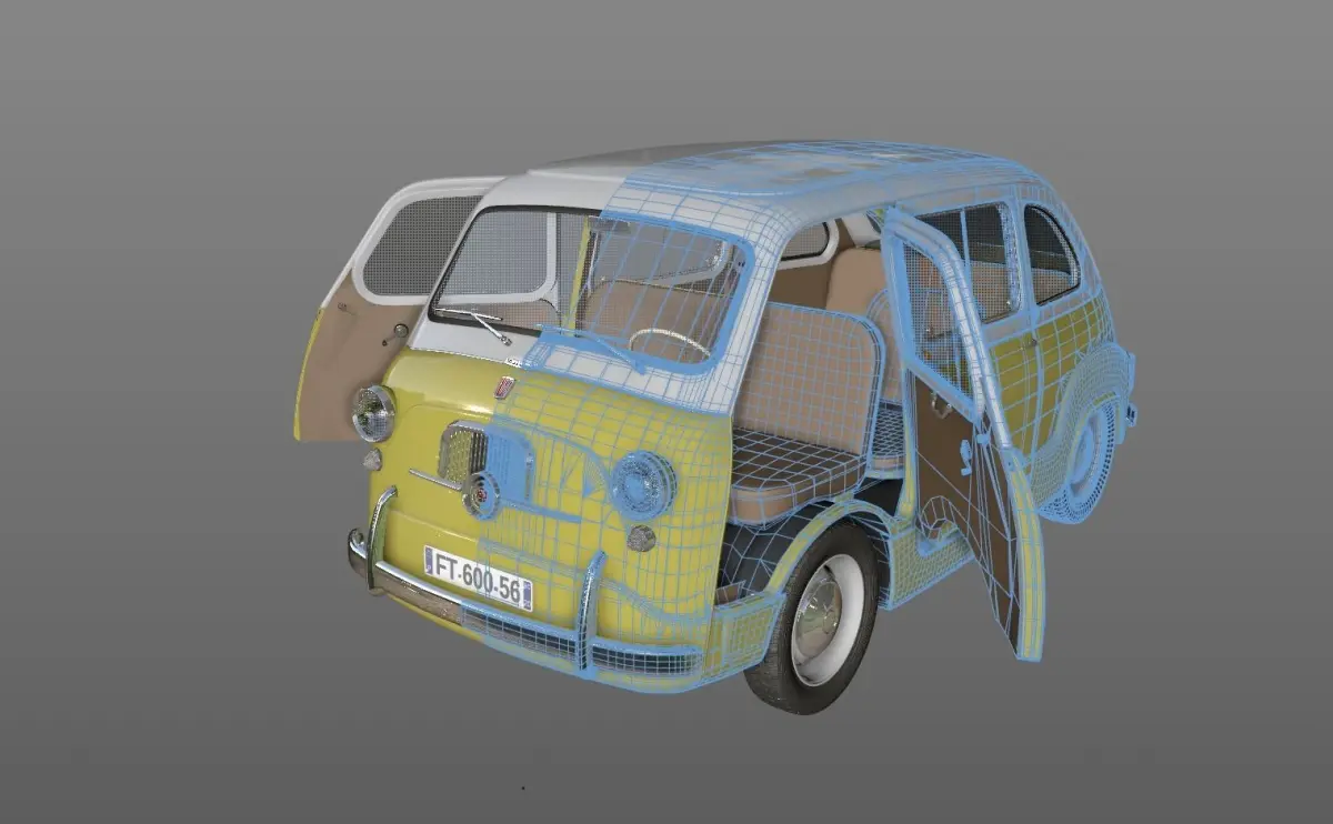 High detailed 3D model FIAT 600 MULTIPLA 1956, from inside and outside.
