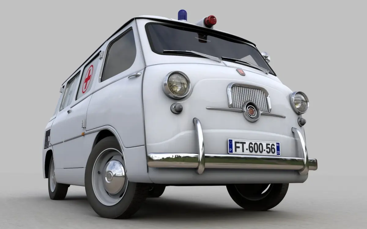 High detailed 3D model FIAT 600 MULTIPLA AMBULANZA 1956, from inside and outside.
