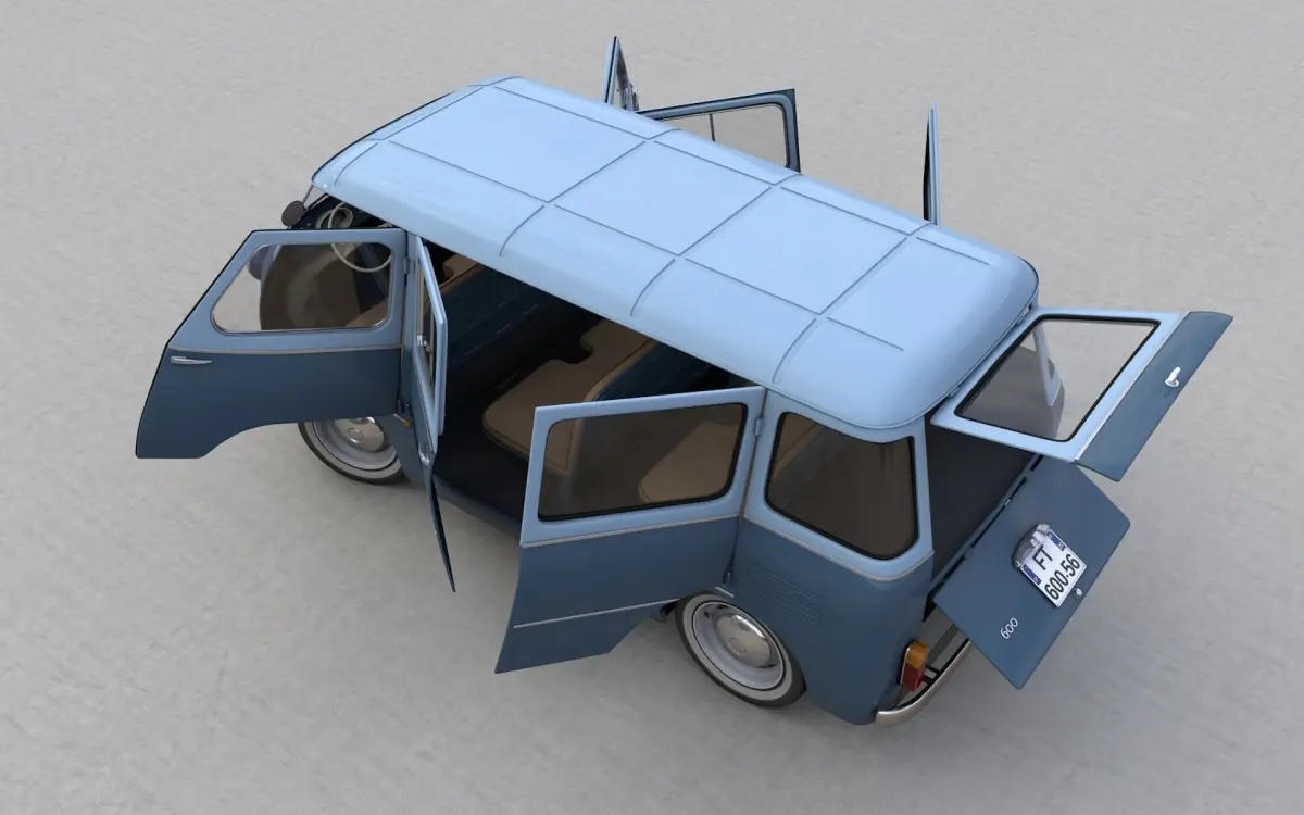 High detailed 3D model FIAT 600 MULTIPLA CORIASCO FAMILIARE 1956, from inside and outside.