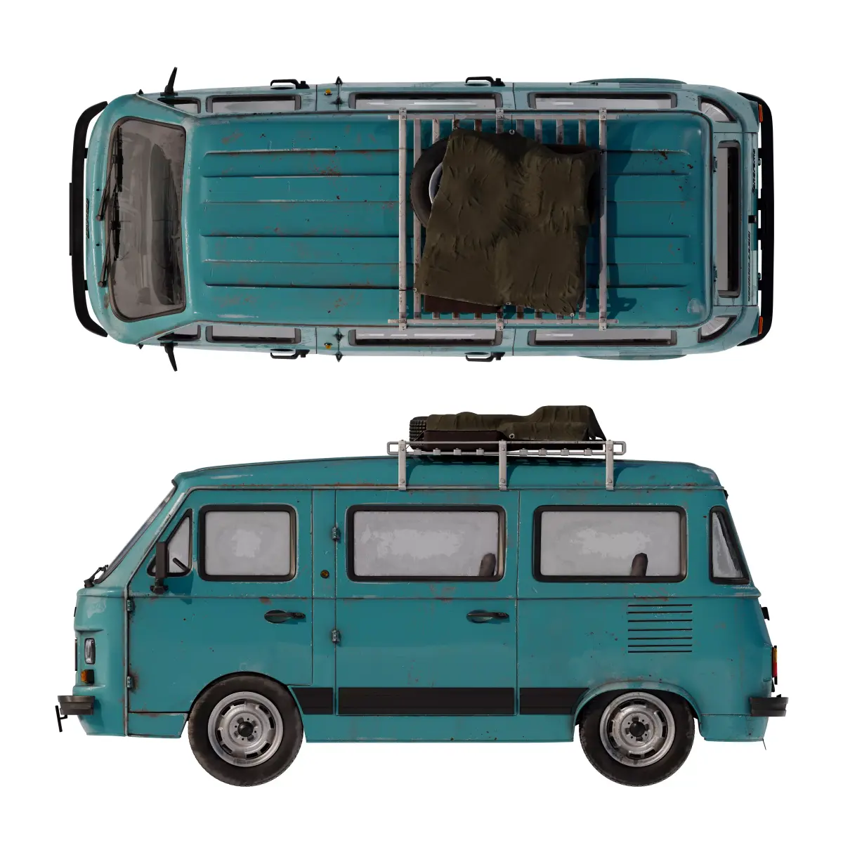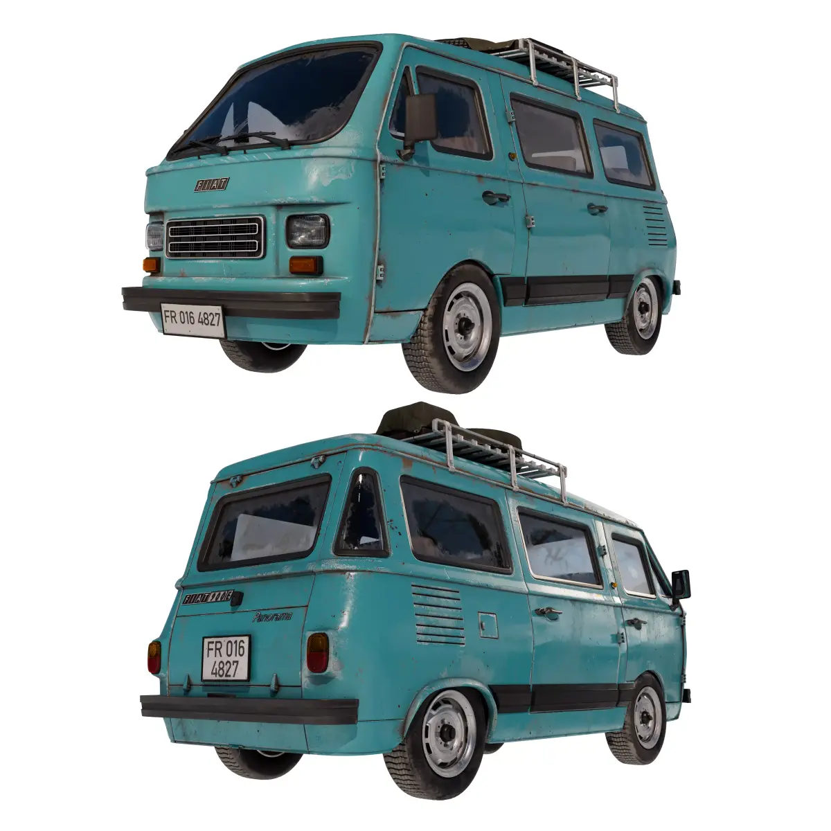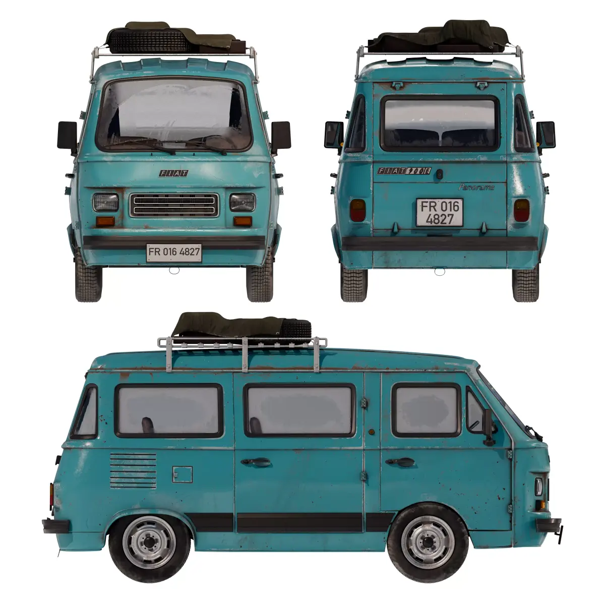 This 3D project is a recreation of the Fiat 900e Panorama, a retro vehicle originally from Spain but widely popular in France during the 1980s. 3D modeling was done in Blender, UV-mapping in RizomUV, texturing in Adobe Substance 3D Painter, rendering in Autodesk 3ds Max with Chaos Corona engine and final post-processing in Adobe Photoshop.