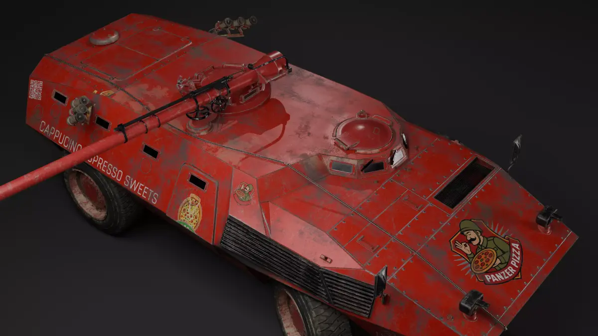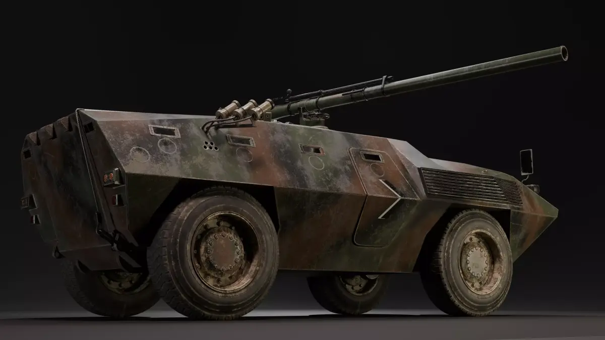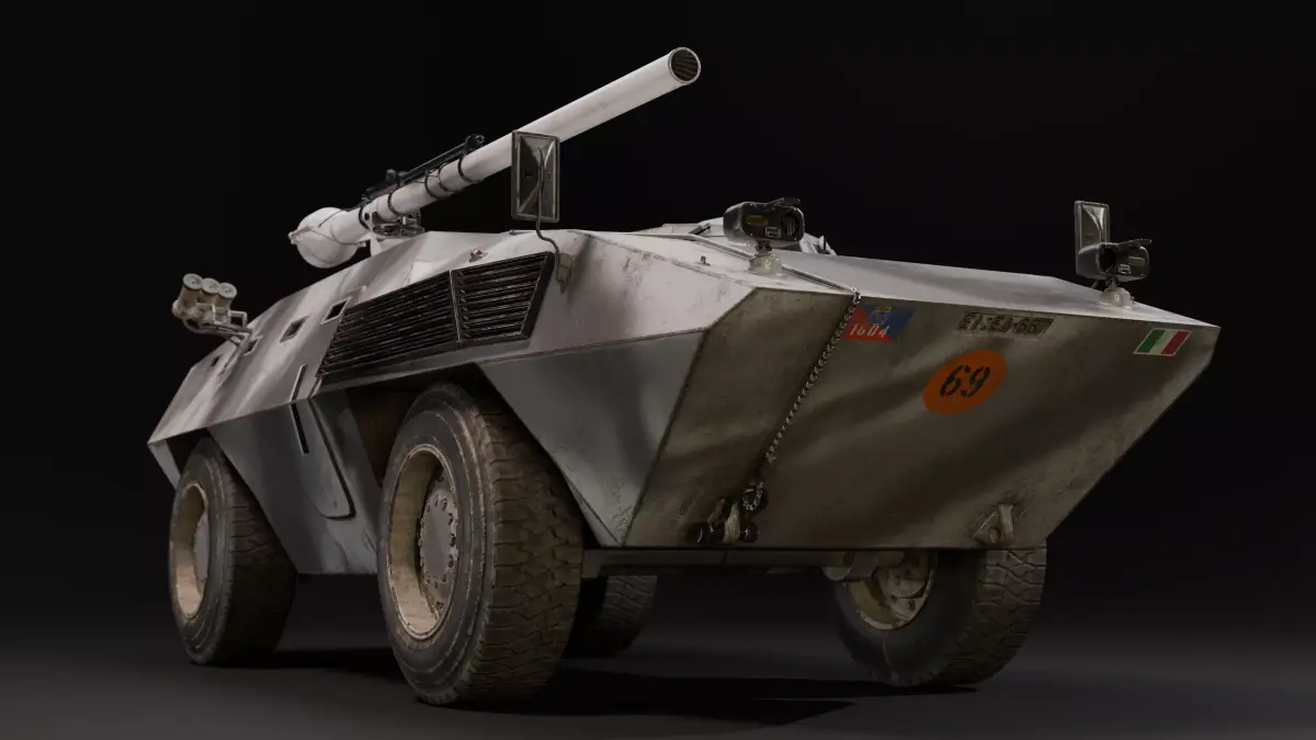 Infamous italian made armored car FIAT CM 6614 , modeled in Blender, textured in Substance PainterModel comes with M40A1 105 mm recoiless rifle. Of course you can change it, replace with other weapons if you want. Game ready Textures :