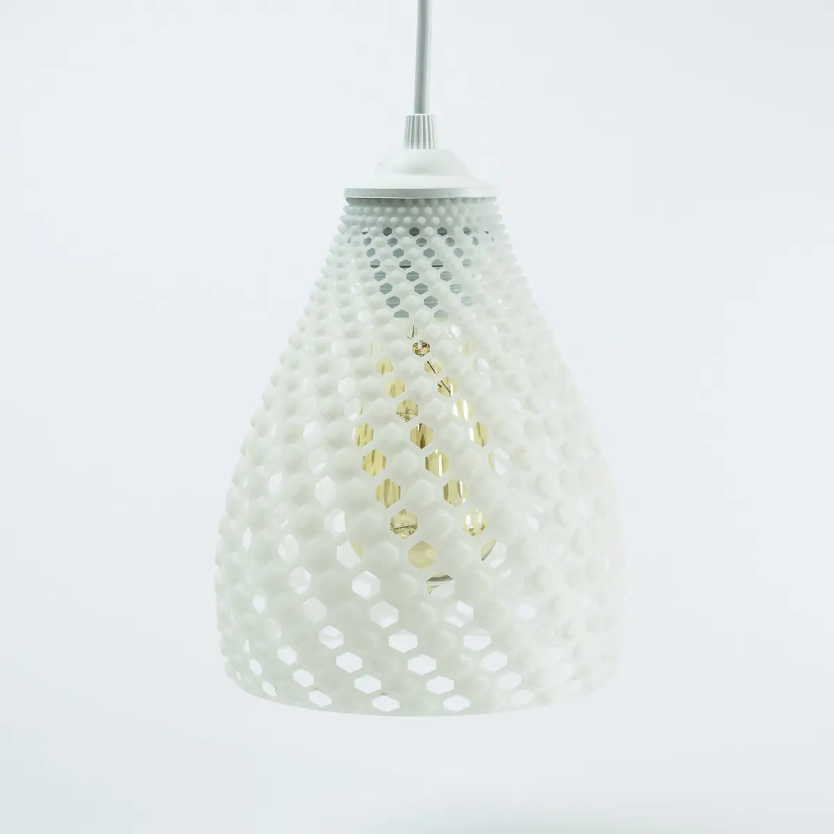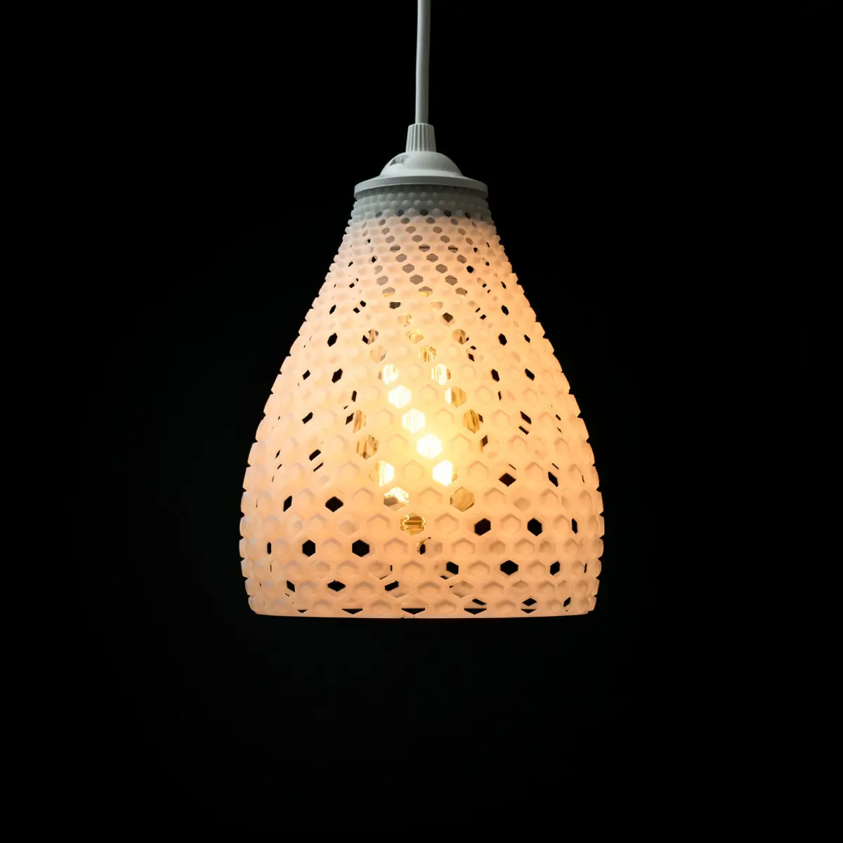Introducing the mesmerizing 3D printed Fibonacci Pendant Illumion, a true embodiment of elegance and mathematical harmony. This stunning creation combines the principles of the Fibonacci sequence with a captivating hexagonal opening design, resulting in a pendant shade that exudes both beauty and sophistication.