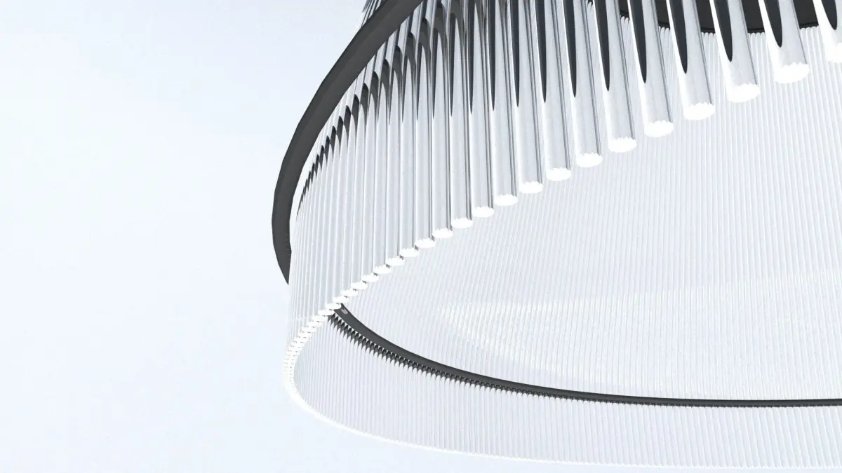 This ceiling light takes it's shape from 360 strands of clear Fibre which allows for the light to pass along it and disperse from the end.