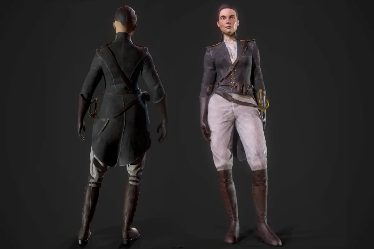 Vertex counts of Props: 2993/3227/1224/1118/1061(Pistol/Rifle/Sword/Sheath/Bicorne)