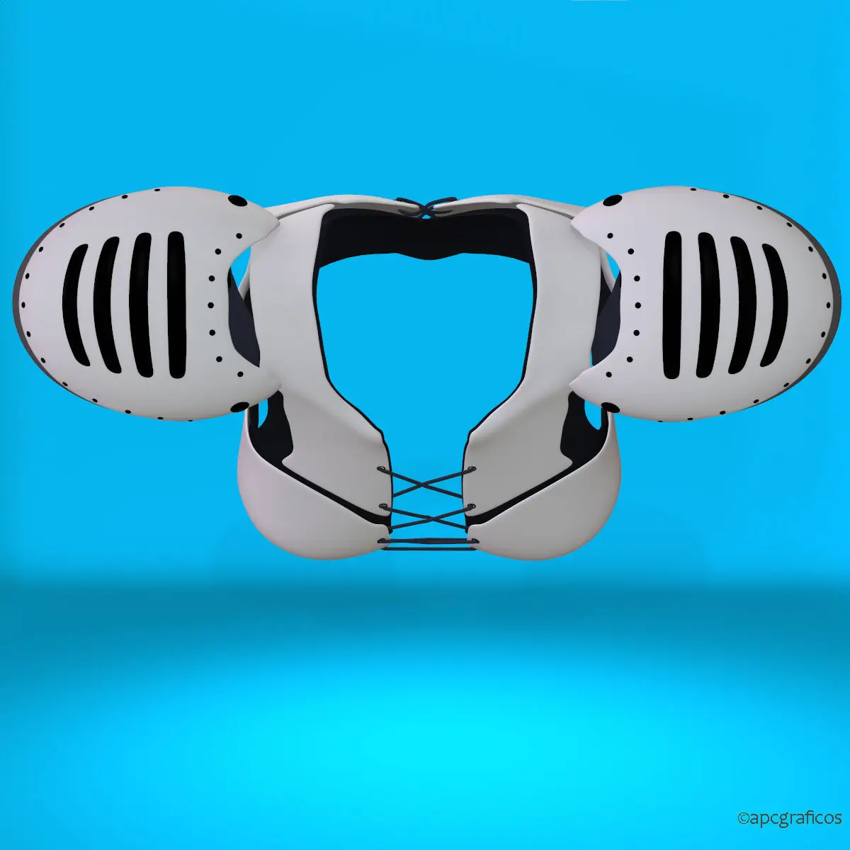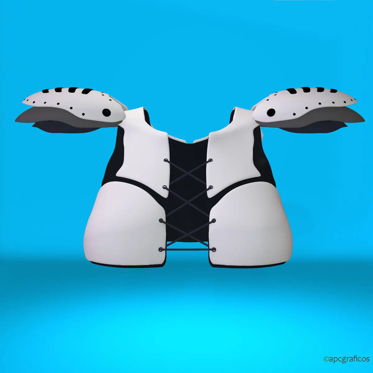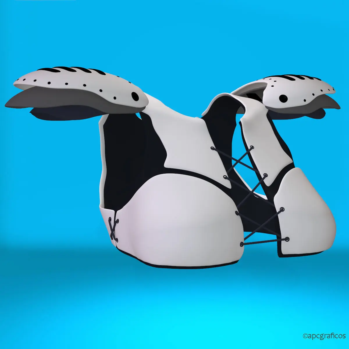 -Product Description: Fictional sports armor, not a regulation sports gear, just a fantasy interpretation. It can be used in many contexts such as american football, canadian football, lacrosse, hockey, LFL, dodgeball, fictional sports, fantasy and futuristic renders...