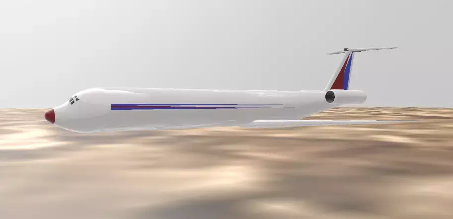Fictional narrowbody jetliner inspired by the rear engine T-tail configuration of classic aircraft such as the MD-80 family.