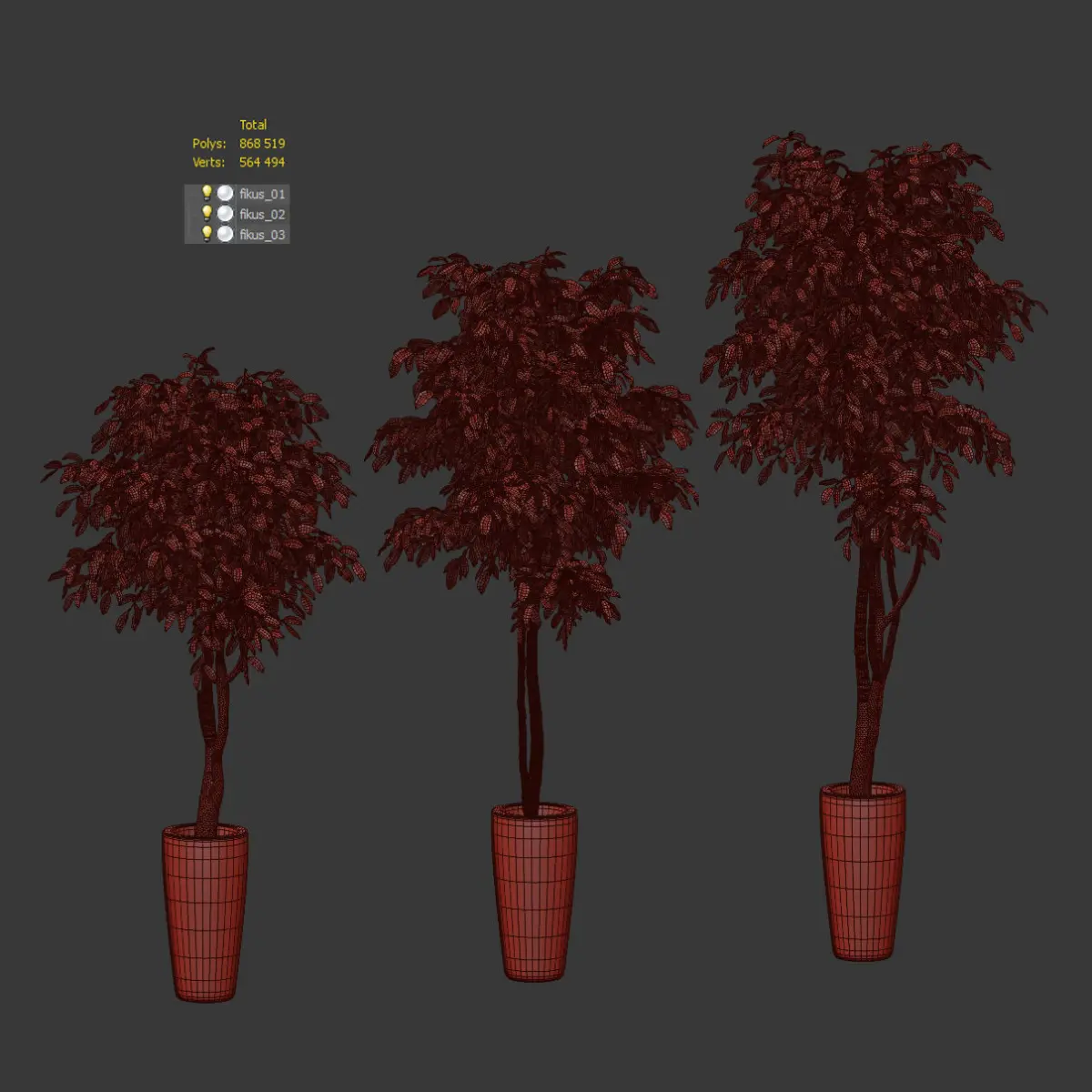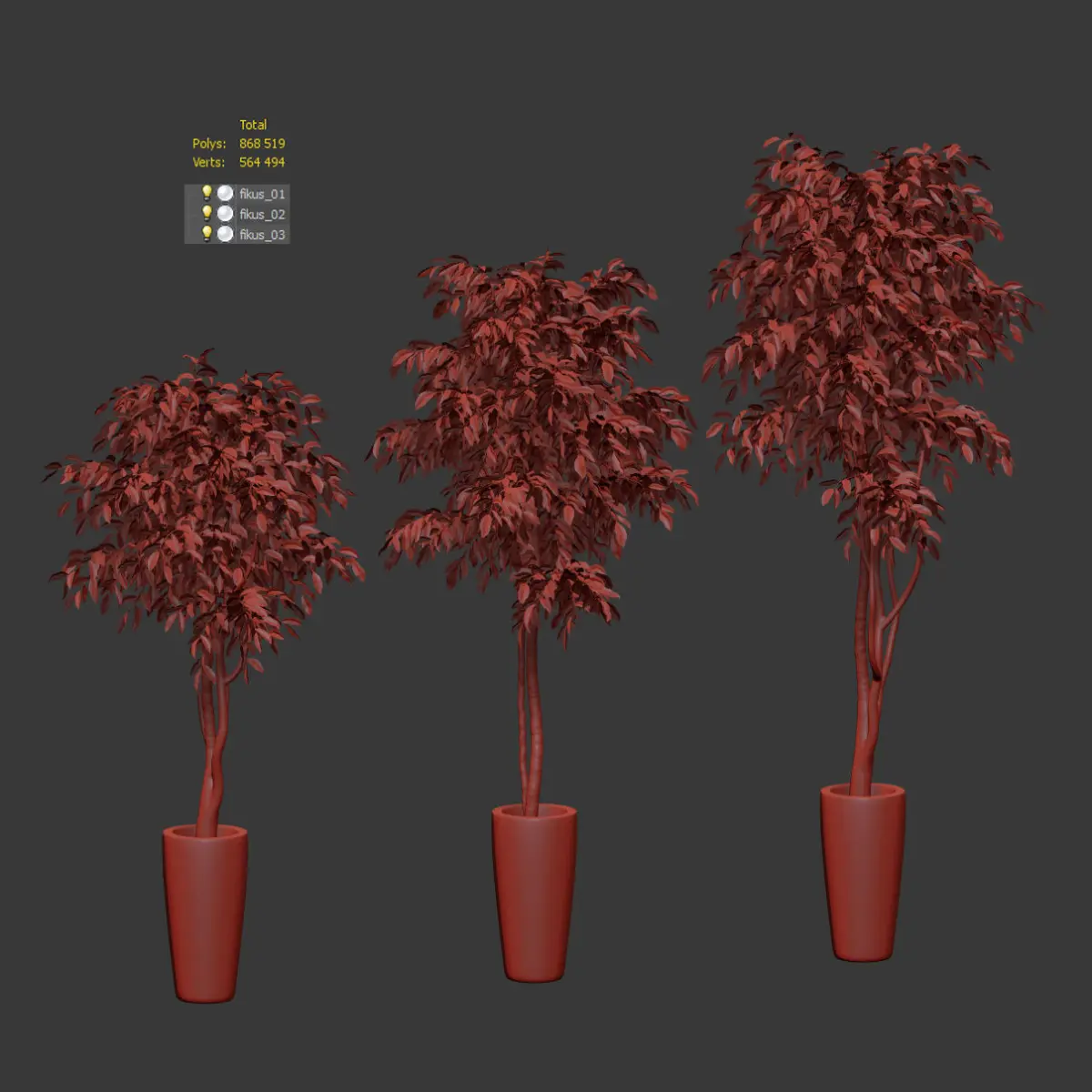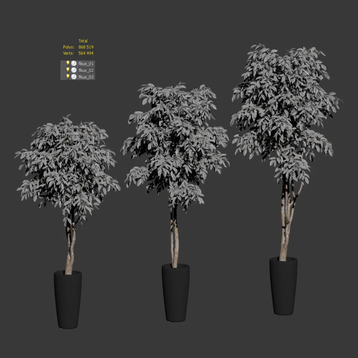 Ficus Benjamin Nitida on a bole. 3 models