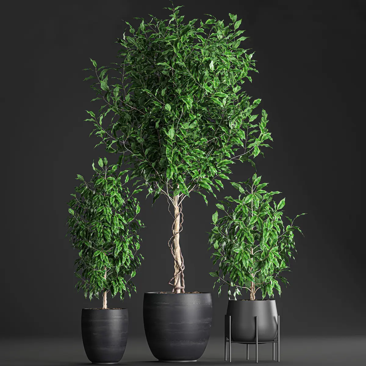 Ficus benjamina trees in a flowerpot for interior design 553 3D model