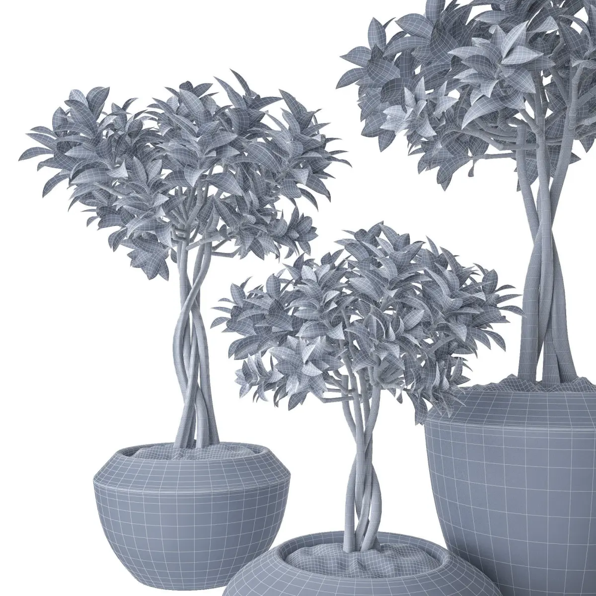A set of three decorative plants Ficus Microcarpa in stylish and modern flowerpots