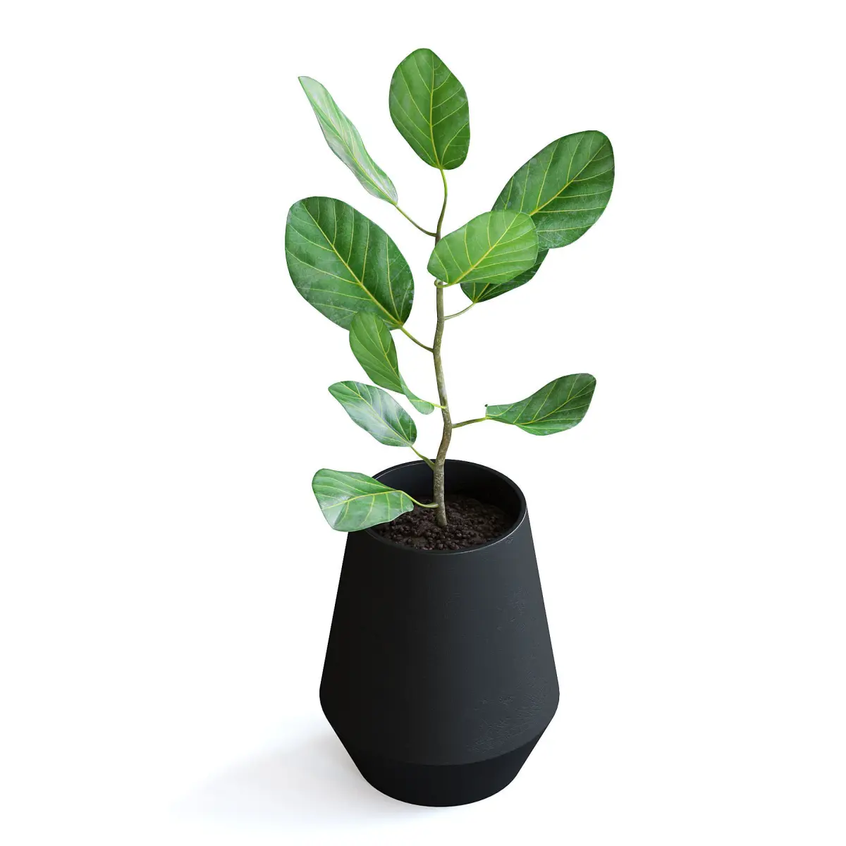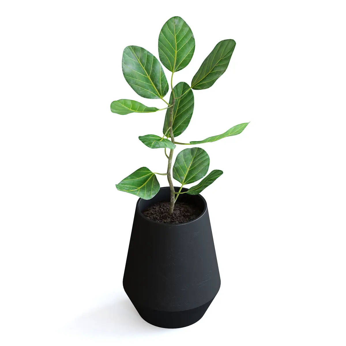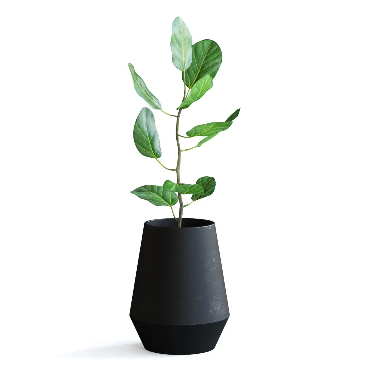 Ficus plant in black metal pot.