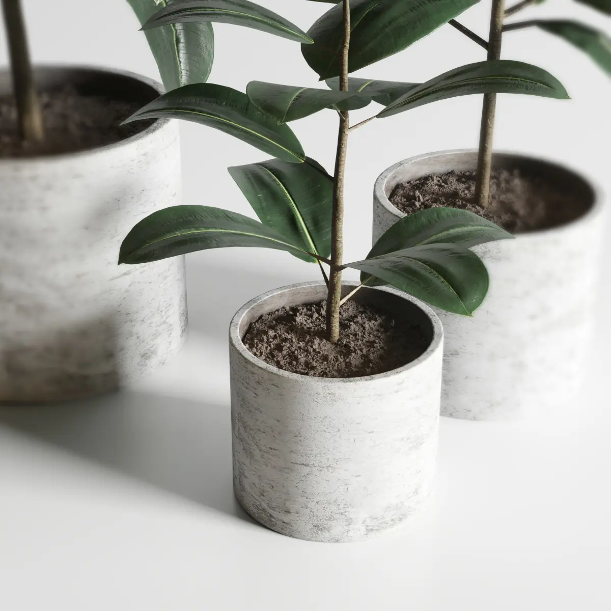 HomeCatalogFicus rubbery plant in concrete dirt vase 3D model