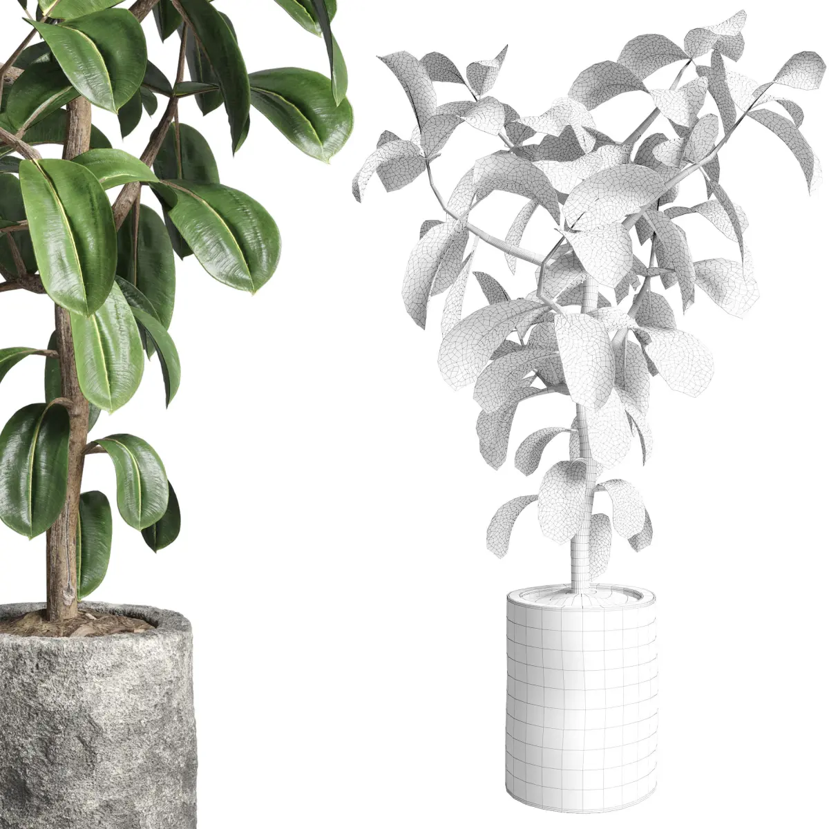 HomeCatalogFicus rubbery plant in stone vase Indoor plant 263 3D model