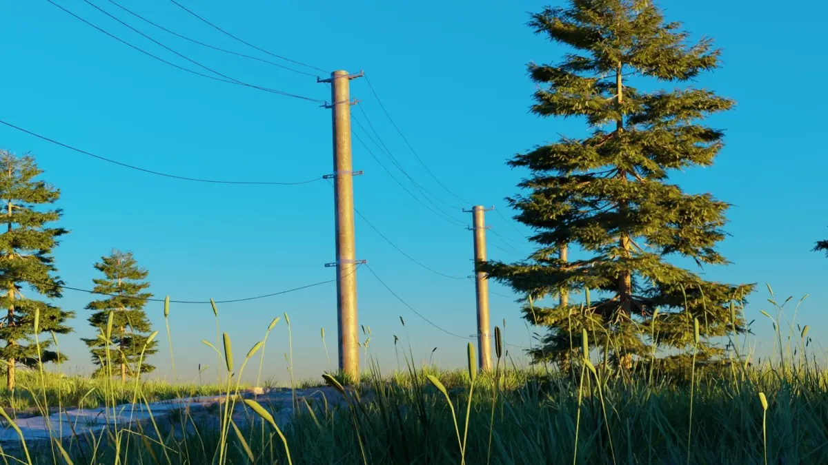 Detailed scene of a road in a field with power lines and a road made of concrete slabs. Great attention has been paid to the details of the vegetation, the scene has more than 3 types of grass, 2 types of fern and 1 type of monstera, the scene also has several trees and 2 types of rocks. Fully customizable materials and lighting, the scene can be used anywhere. 4K textures were used.
