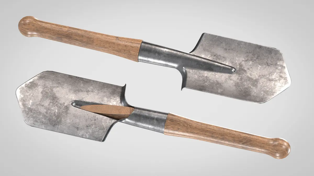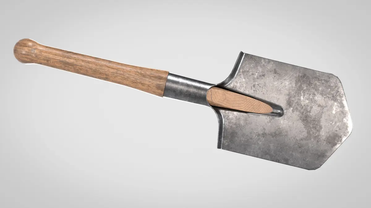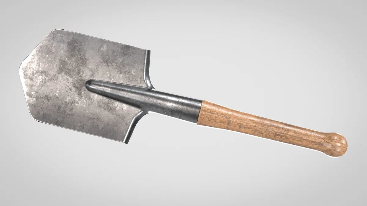 Game ready low-poly 3d model of a Field Shovel for games, realtime, background use with 2k and 4k PBR textures