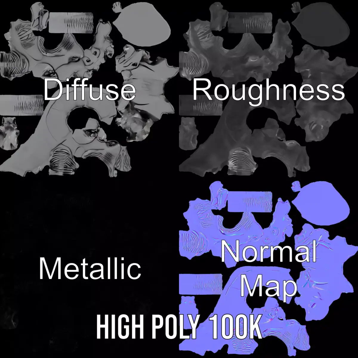 The model's textures are PBR, Diffuse, NormalMap, and reflection/roughness/metallic, which are suitable for any modern rendering engine. All models are accurately unwrapped and have no overlapping UV. All textures are 4096*4096 in size.