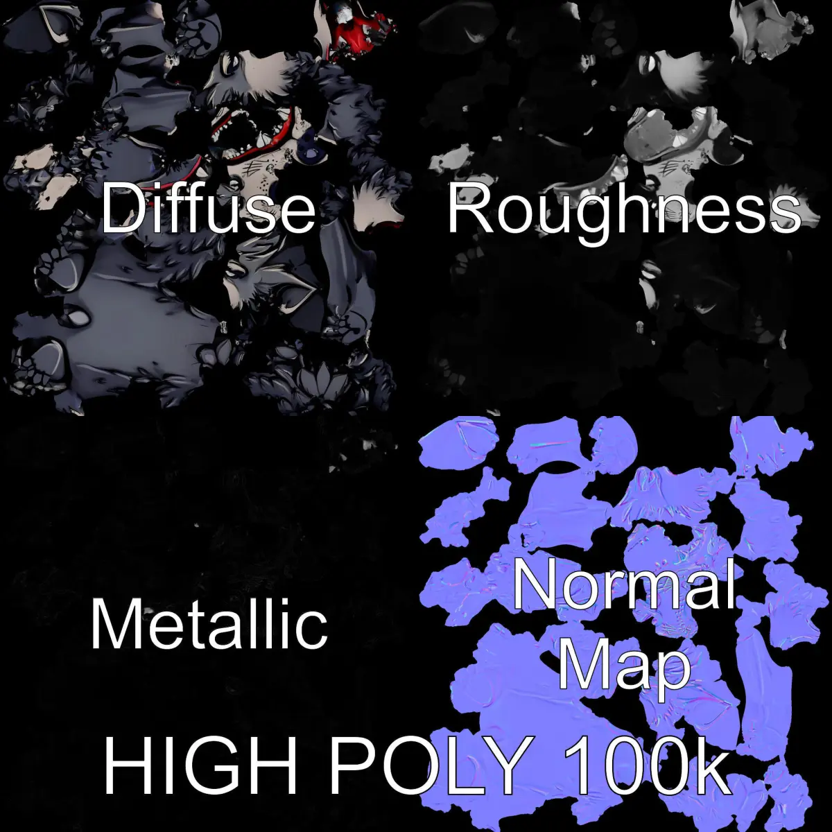 This 3D model pack features a detailed fierce cartoon wolf, available in three levels of detail: low-poly, middle-poly, and high-poly. Suitable for integration in animations, games, and simulations, it boasts high-quality PBR textures with 4096x4096 resolution. The textures include diffuse, normal map, and reflection/roughness/metallic maps, providing stunning realism in any rendering engine.