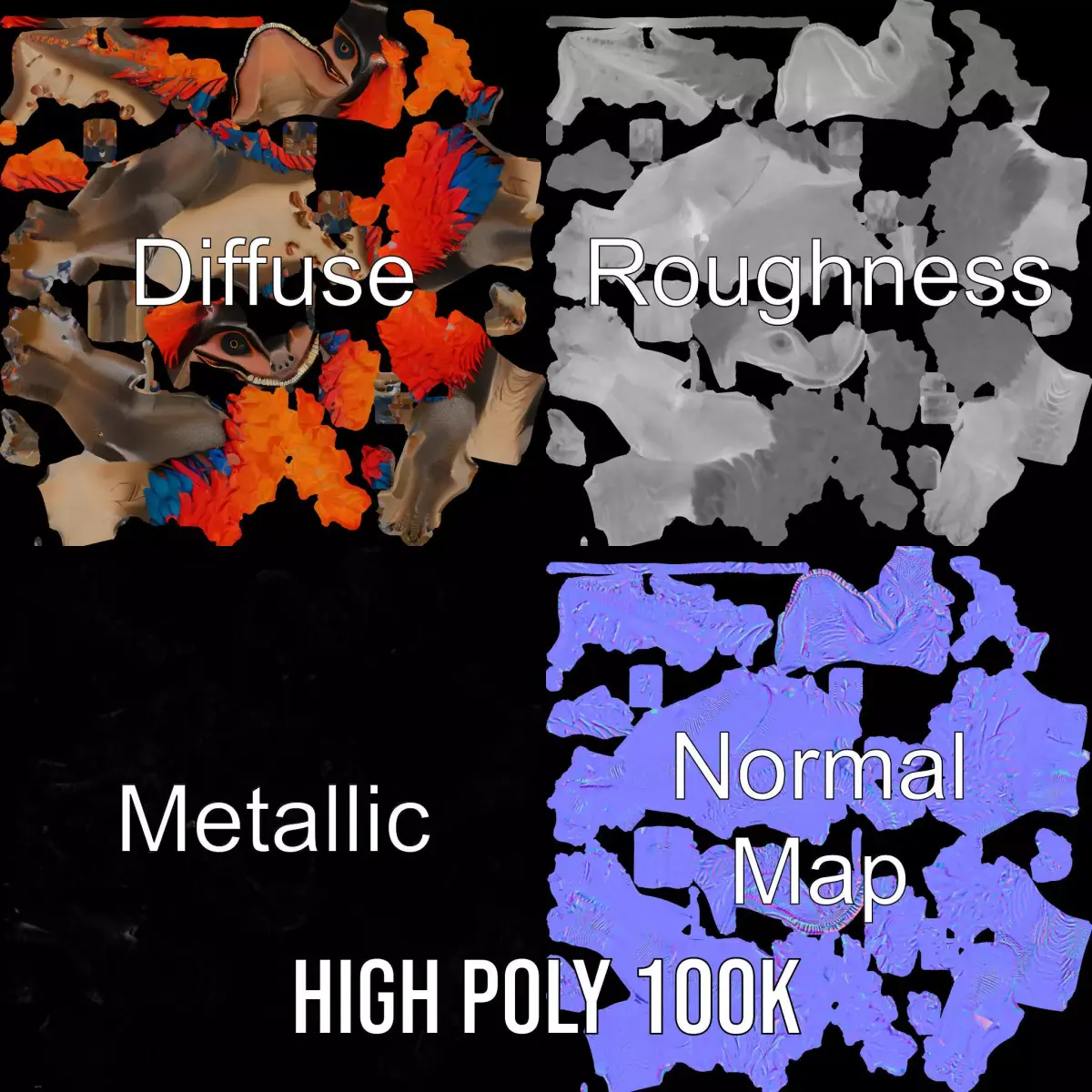 The Fiery Feathered Dinosaur model pack showcases a stunning, vividly colored dinosaur adorned with striking feathers, perfect for adding a dramatic visual to any scene. Each model comes with 3 levels of detail: low-poly (1000 triangles for mobile), middle-poly (10,000 triangles for environment), and high-poly (100,000 triangles), providing flexibility for production rendering in 3ds Max, Maya, Cinema4D, Blender, Vray/Corona/Cycles, compatible with game engines like Unity and Unreal, and interactive presentations. Its textures are PBR, Diffuse, NormalMap, and reflection/roughness/metallic, making it suitable for any modern rendering engine. With accurately unwrapped models and no overlapping UVs, this model is perfect for educational simulations, fantasy animations, and themed entertainment experiences. All textures are 4096*4096 in size. Please like and leave a comment if you enjoyed this model!