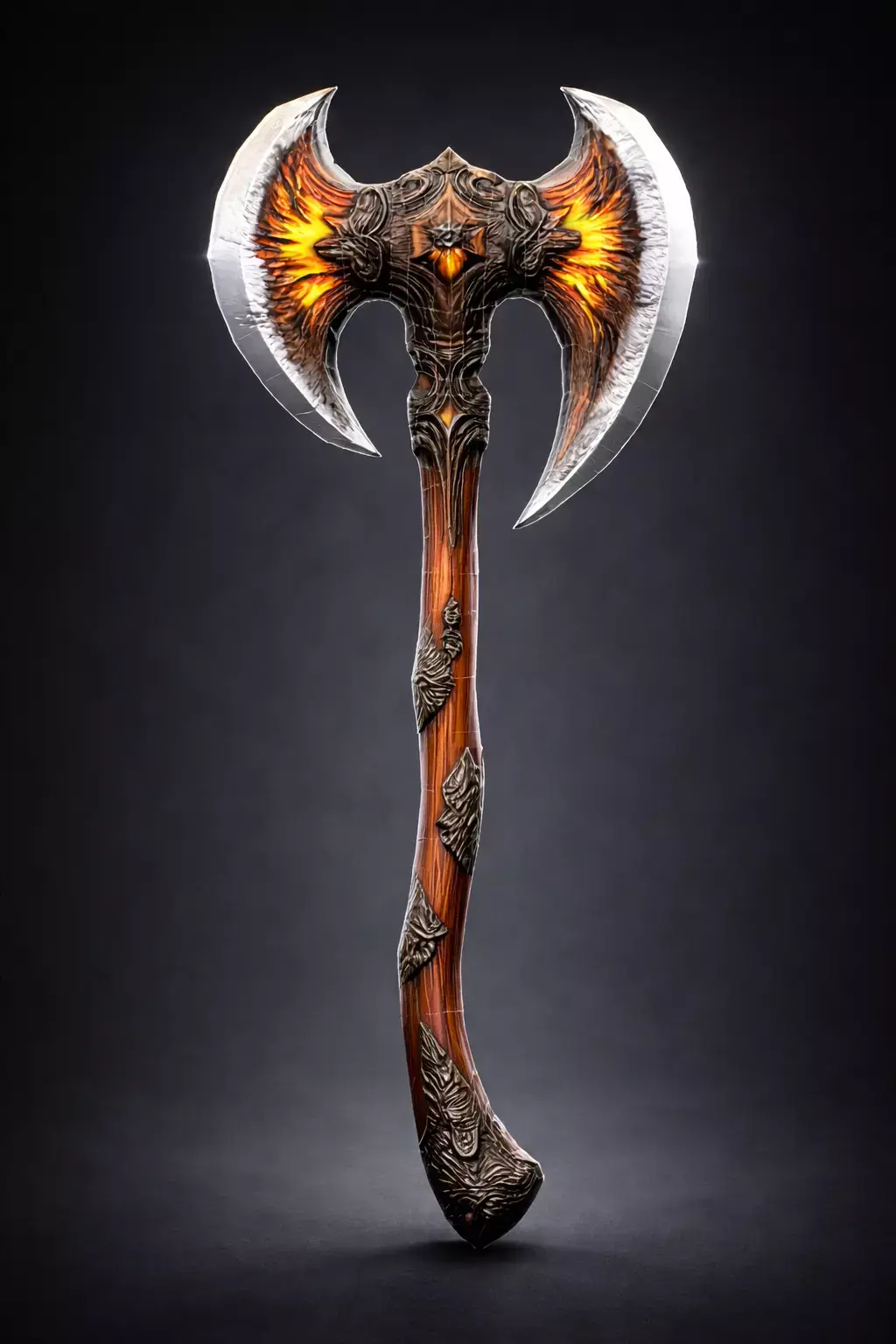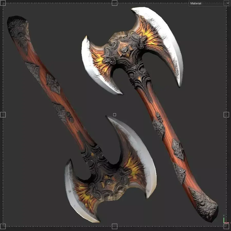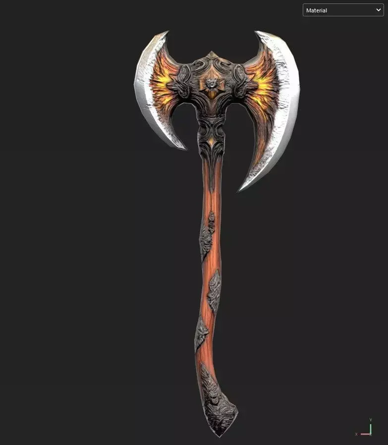 Fiery Winged Axe is a stylized fantasy weapon featuring a dramatic wing-shaped blade design with fiery accents emerging from the center structure. The detailed ornamental head combined with a curved wooden handle gives the axe a powerful and mythical appearance, making it ideal for fantasy games, RPG environments, cinematics, and real-time rendering projects.The model is optimized and game-ready, built with efficient topology and clean UVs. High-quality PBR textures created in Substance Painter provide realistic material response in modern engines such as Unreal Engine and Unity.