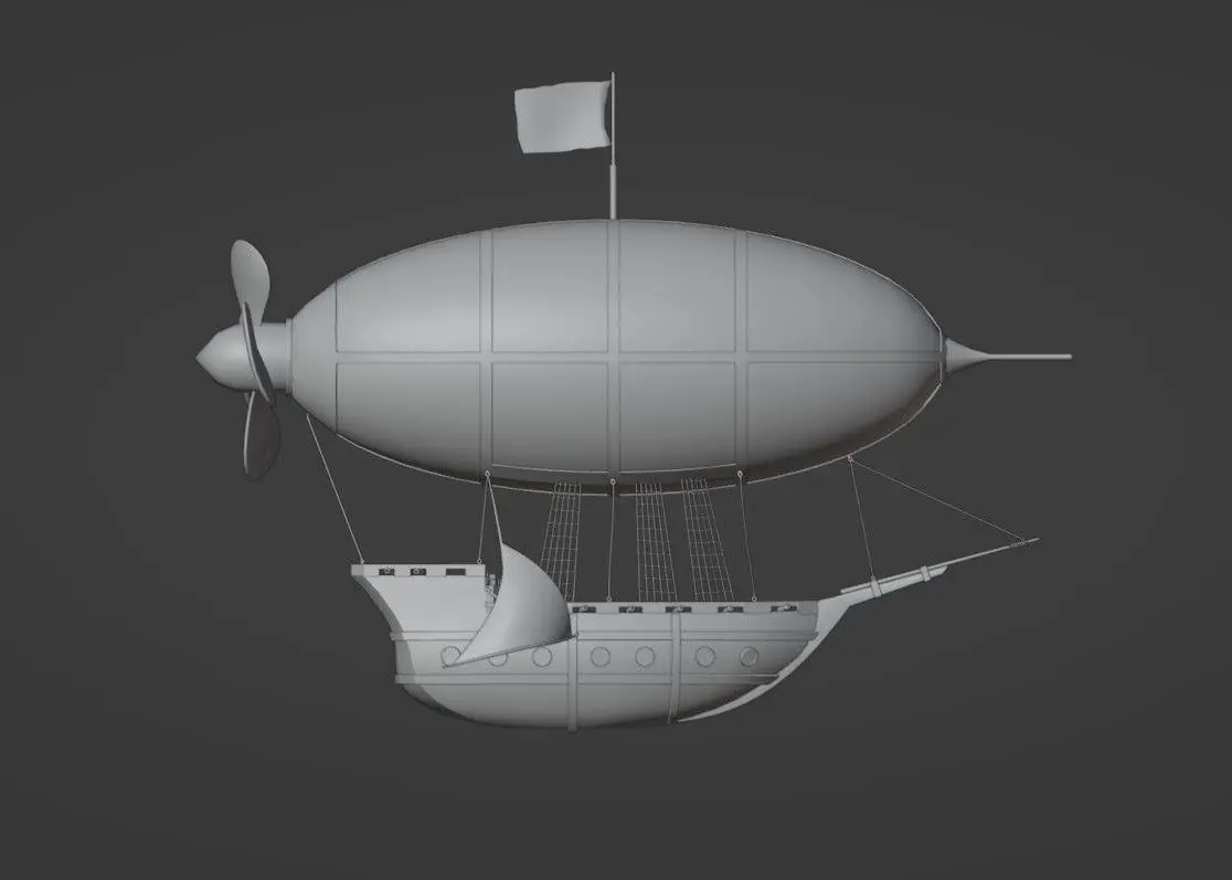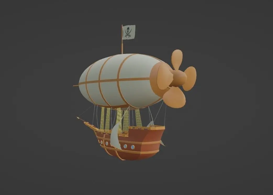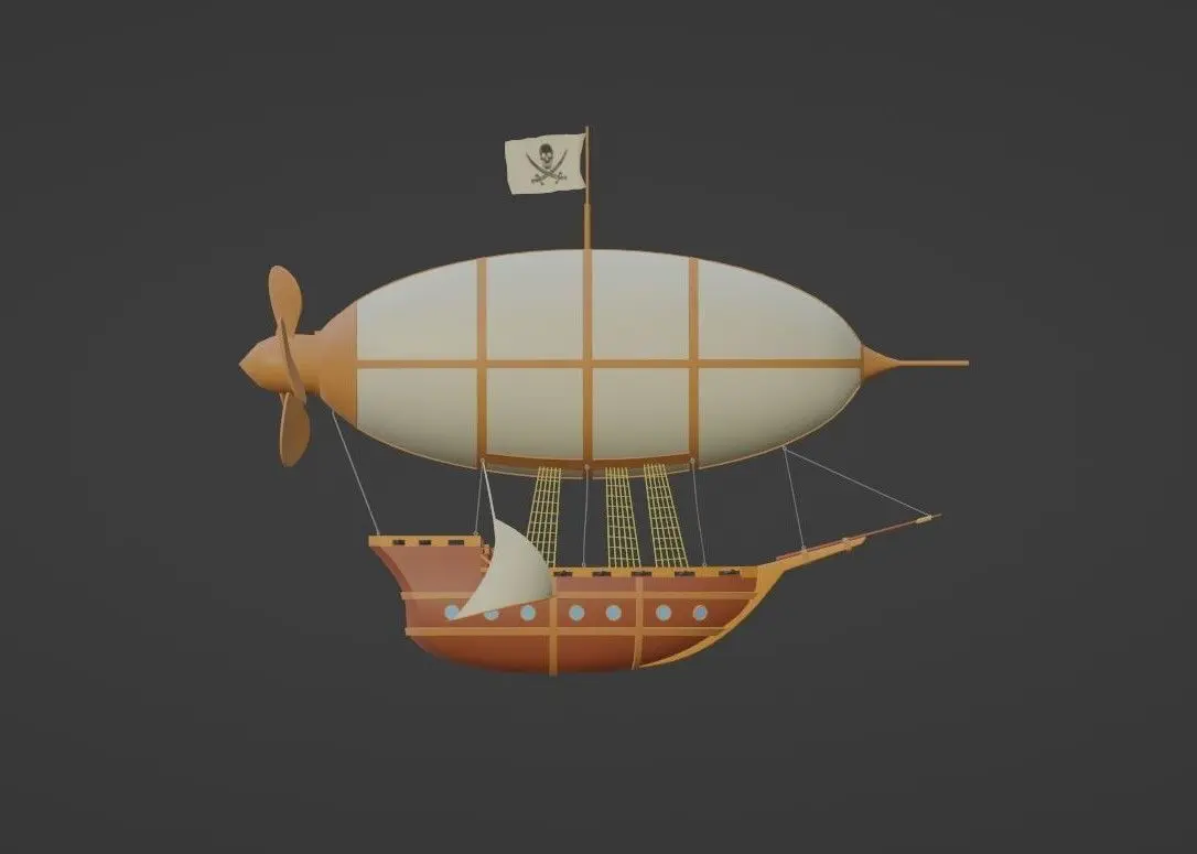 Pirate's flight ship model that you can use in games or cartoons. The Blender file includes a ship model with a color palette texture and another with the materials.