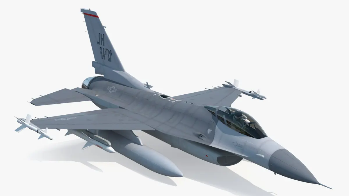 This model offers a highly detailed representation of the F-16 jet, including a fully rigged pilot in the cockpit and a functional missile launcher. It features realistic textures, accurate aerodynamic design, and functional rigging for the missile launcher and pilot, making it ideal for immersive simulations and detailed animations.