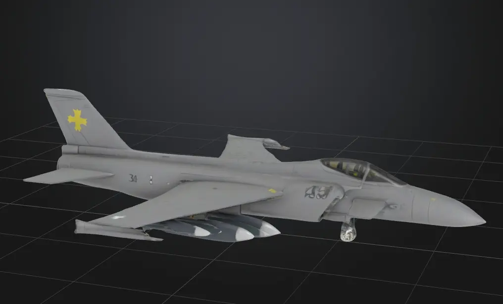 Stylized 3D model of a modern fighter jet, inspired by the SAAB JAS 39 Gripen. This original design captures the silhouette and sleek form of a multirole combat aircraft, combined with fictional elements and markings. Ideal for concept rendering, games, or 3D printing.