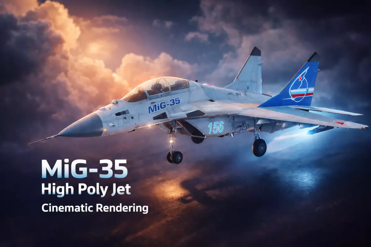Bring your projects to life with this highly detailed MiG-35 fighter jet 3D model, crafted for cinematic rendering, close-up shots, and professional visualization.