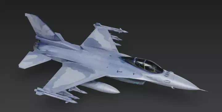 This model is optimized for rendering, visualization, and integration into simulations or games. It includes UV-mapped textures for easy material application in various software. No interior cockpit beyond visible elements, no rigging, and no animations are included—focus is purely on the static high-fidelity exterior model.Available Formats: OBJ, FBX, BLEND (others upon request).Poly Count: Approximately 250,000 (high-poly for detailed renders).Textures: 4K resolution diffuse, normal, specular, and roughness maps included.Perfect for aviation enthusiasts, game developers, or CGI artists looking to add a realistic military jet to their projects.