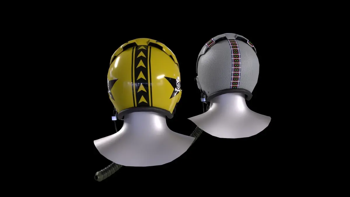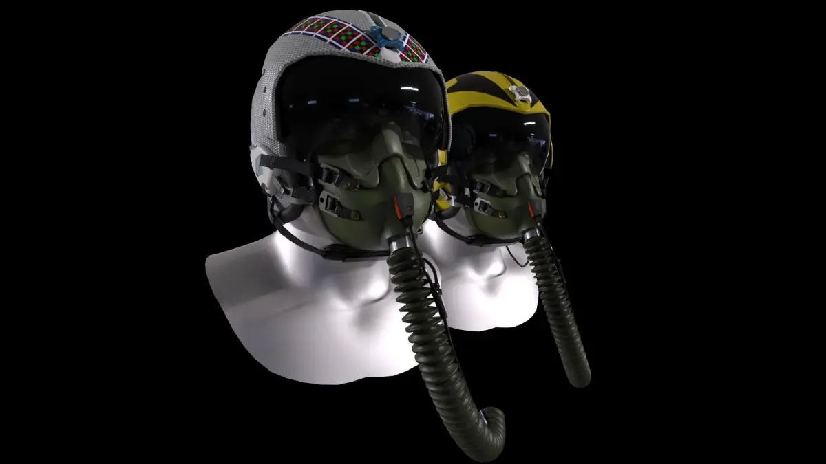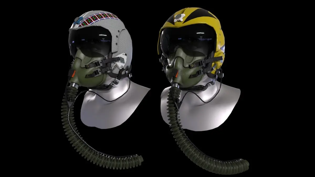 This is a 3D model of the flight helmet HGU-33 with an MBU-12 mask. The HGU-33 U.S.Navy Fighter Attack Aircrew Helmet was designed as a lightweight replacement to the APH-6 series of flight helmets.