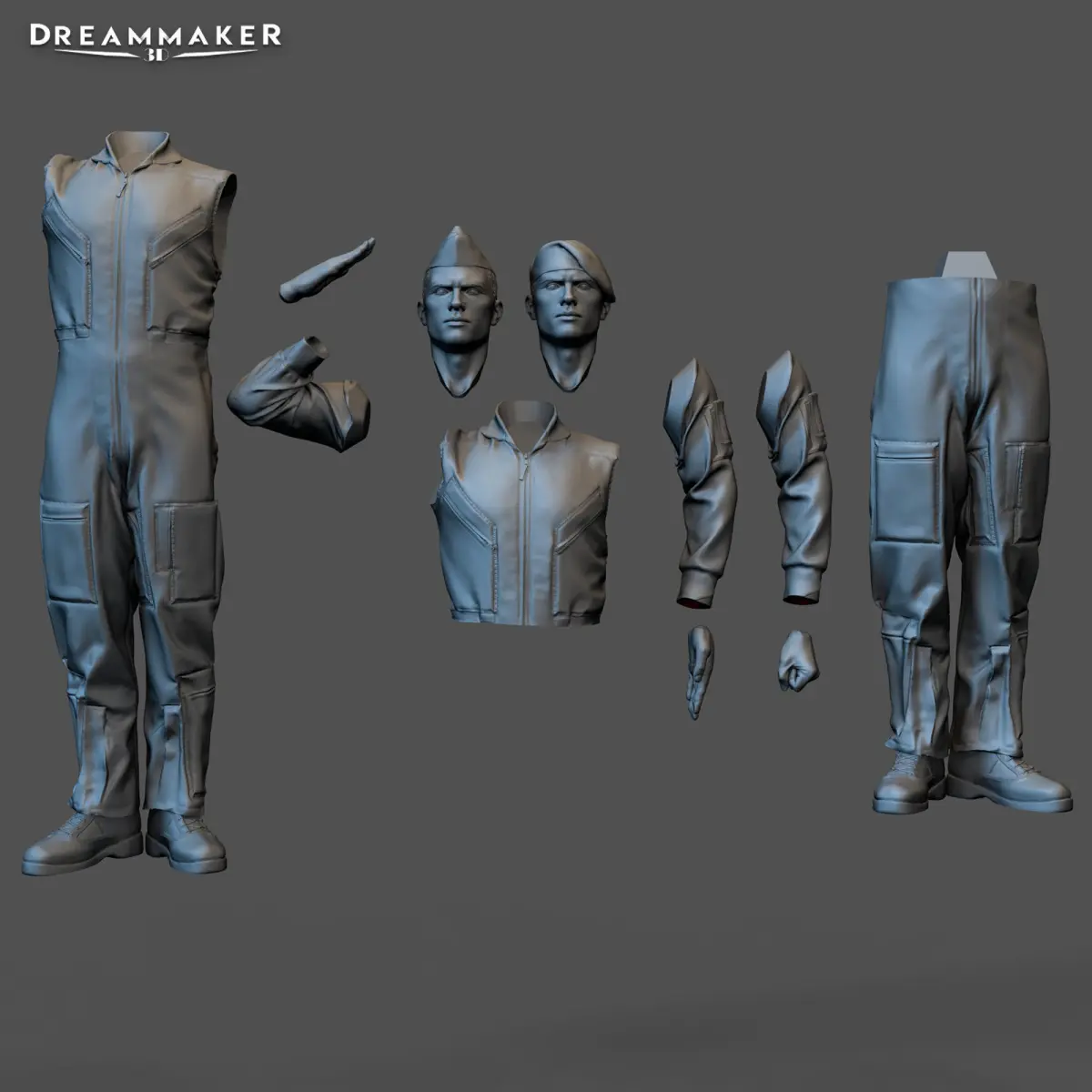 Fighter pilot saluting in american and international position ready to print.includes 2 heads.divided in parts.scale by default in 1/6.