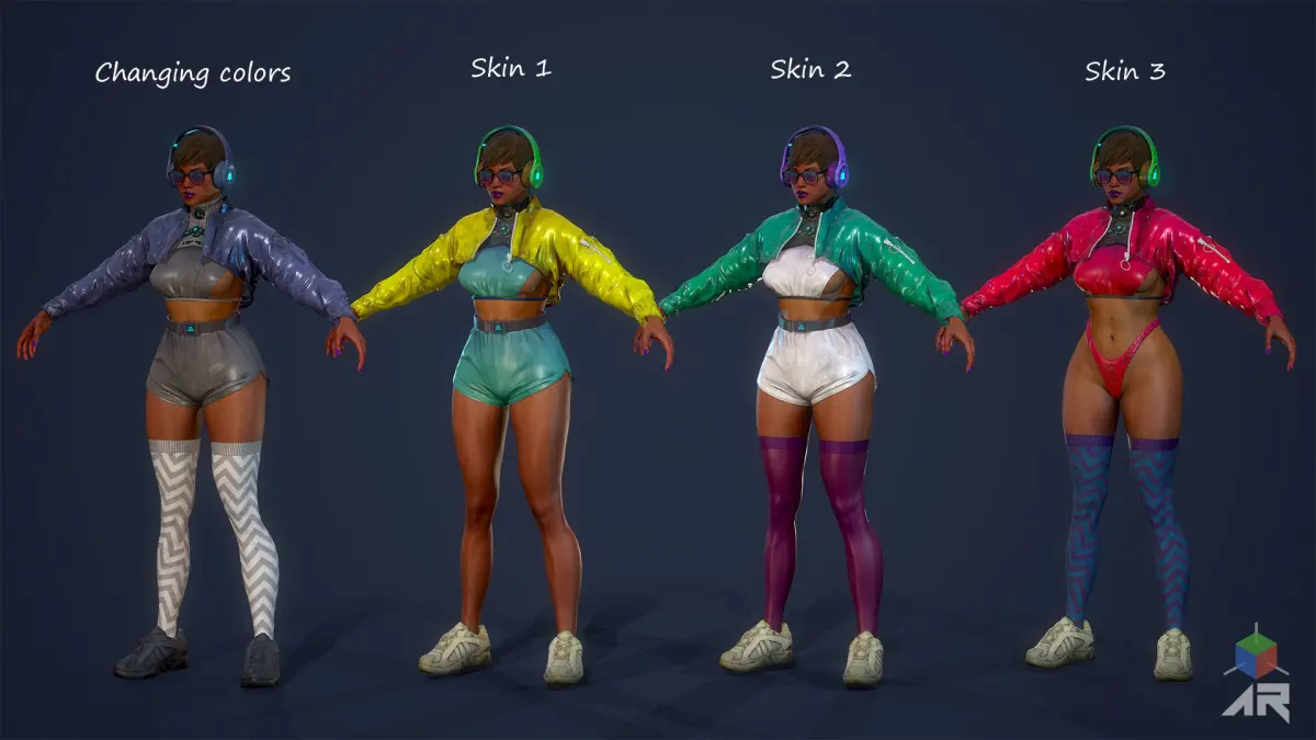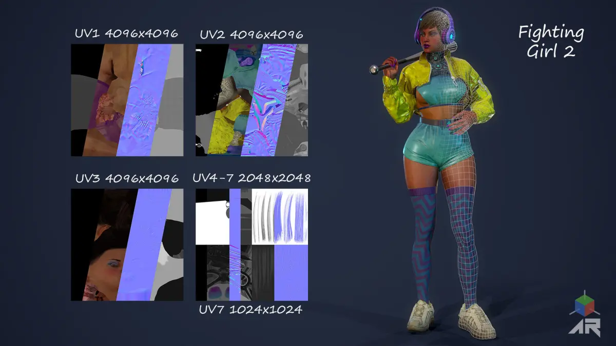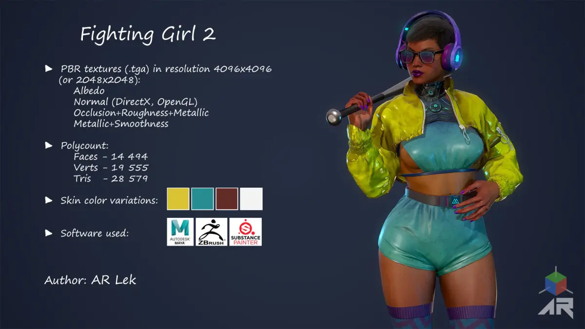► Key Features for UE4: 19 animations included, Epic Skeleton, Subsurface Scattering (SSS), Flexible instance materials, Facial rigg, Weapon included (Bat), Breasts morph target.