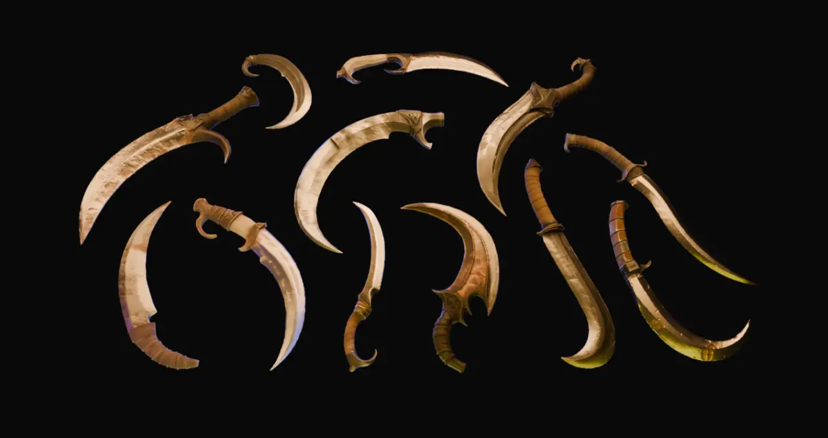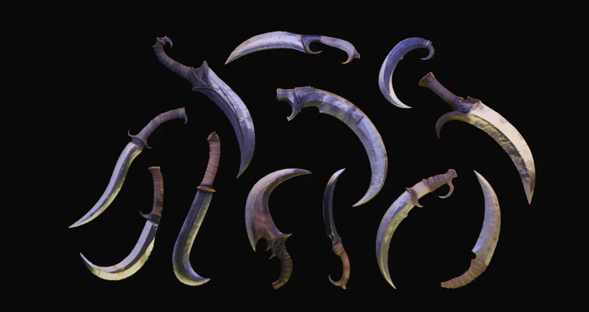 - 12 Bladed Weapons: A diverse selection of intricately designed knives, each with distinct shapes and styles to enhance your 3D arsenal. From tactical combat knives to sleek, fantasy-inspired designs, this pack offers versatility to suit various genres.