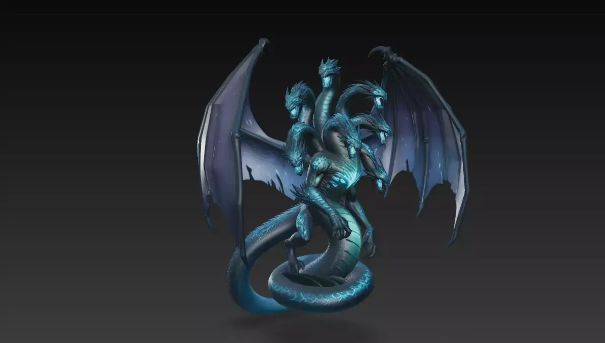 una figura de hidra. Esta figura es ideal para coleccionistas, amantes de la fantasía oscura, juegos de rol, wargames o como pieza central de exhibición.
