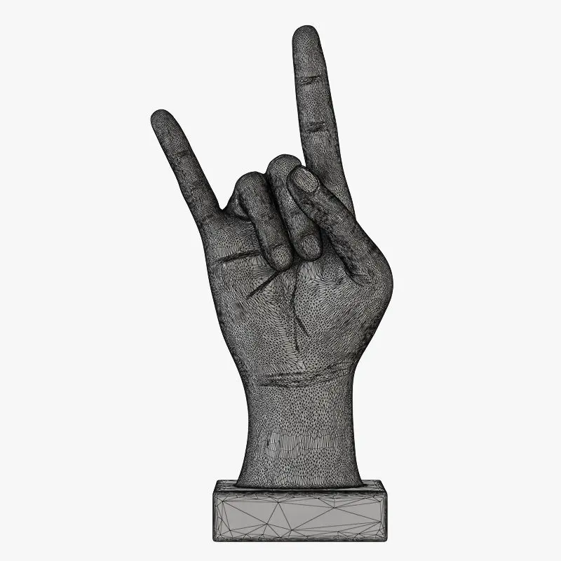 3ds Max 2010. V-Ray 2.40.03. File formats stl, obj,fbx. Figurine hand rock on table top. Model after Decimation Master. System units mm. Polygons: 79246. Vertices: 39619.