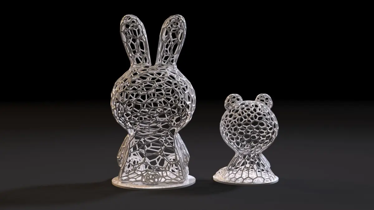 Figurine hare bear. Voronoi. Beautiful interior decoration. The model is designed for 3D printing. The perfect decoration. When used with an electric candle, it shows a very beautiful play of light and shadow. The archive contains files: 3ds max, stl, fbx. Thank you for choosing us)))