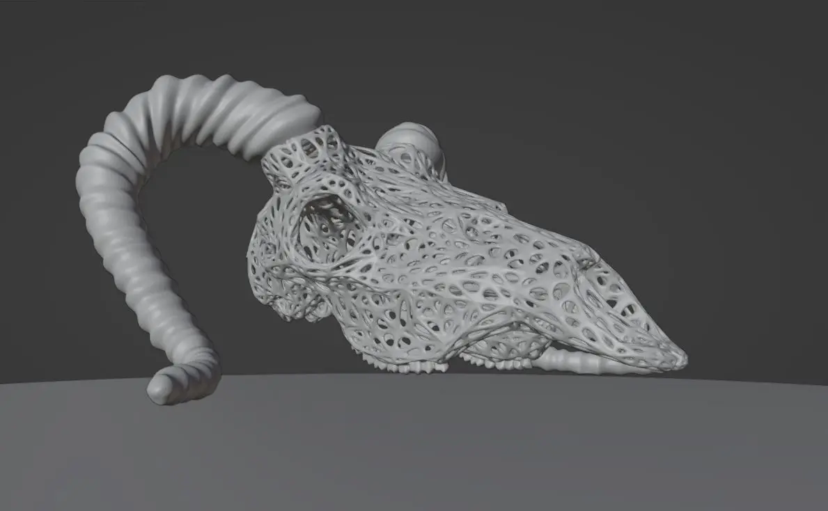 Filigree Goat Or Mountain Sheep Skull With Horn