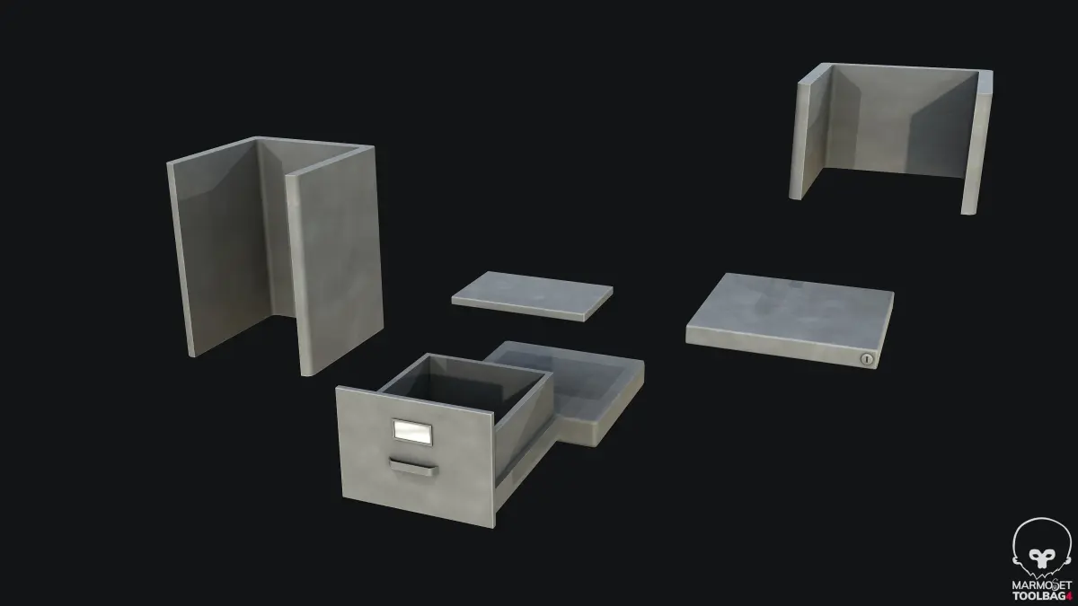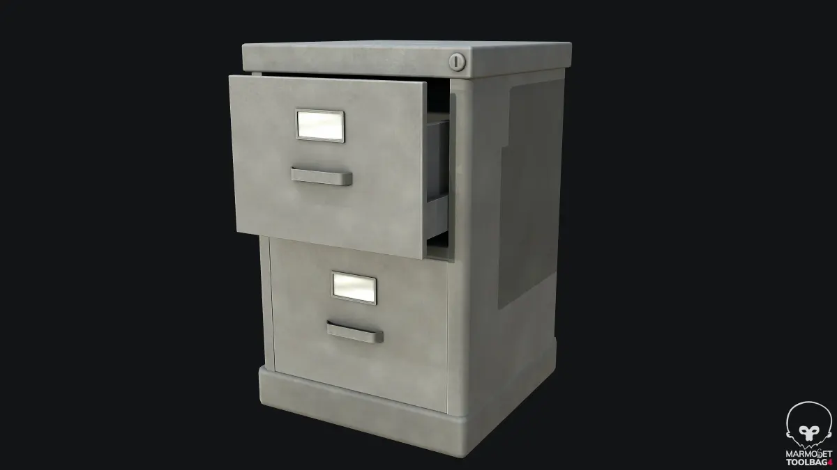 Filing Cabinet Modular Grey PBR Game-ready and low-poly.