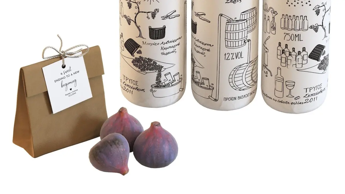 Christos Zafeiriadis of Athens, Greece, gave each of the dark-colored wine bottles a cute paper sleeve that's been casually bound around the neck with string. A silk screening technique was used to copy the lovely illustrations onto each one, showing the consumer a pictorial explanation for how the contents of Filirea Gi wine packaging came to be. Grape vines, rain clouds, baskets and barrels tell a visual story about the fruit's fermentation.