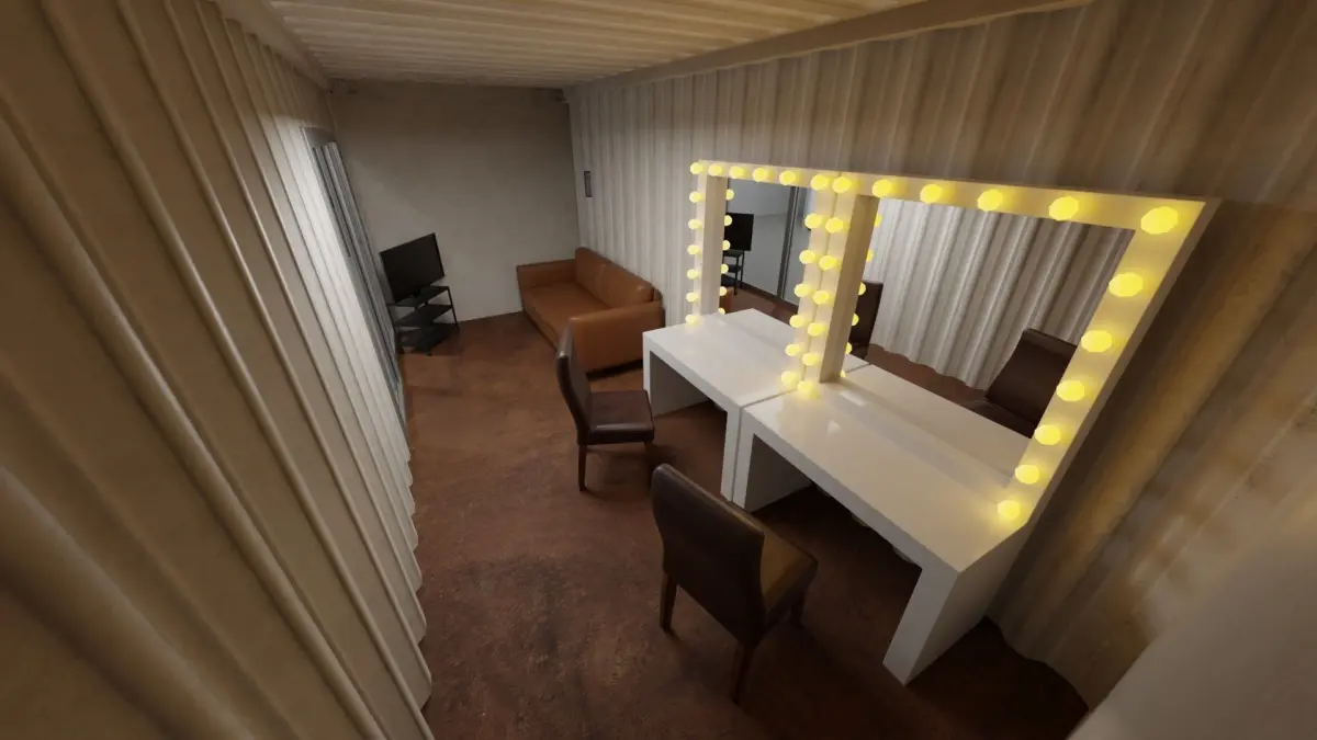 This 3D model represents a warehouse film studio setup, designed for use in creative projects, animations, or architectural visualizations. The scene includes structural elements and layout details that make it easy to adapt or customize.