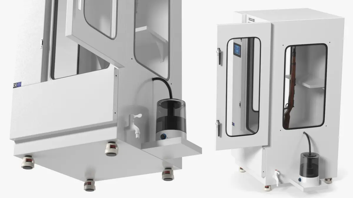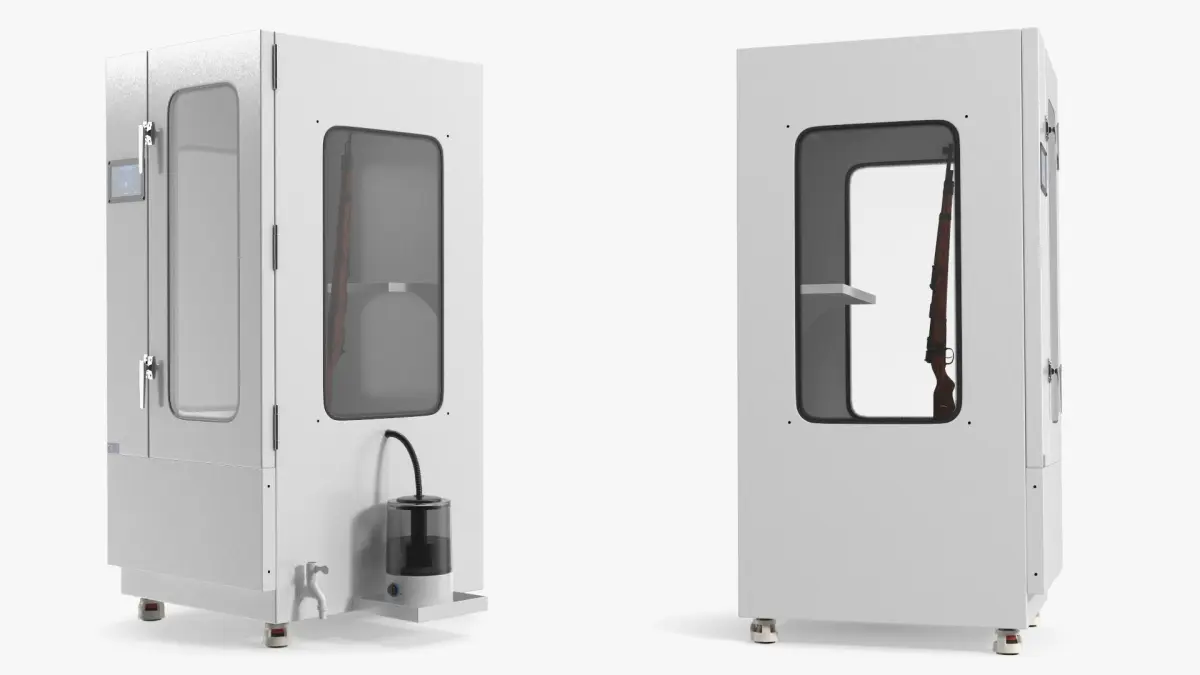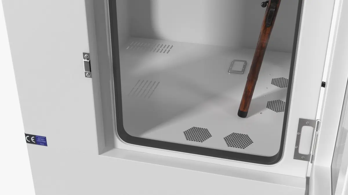 Fingerprint Visualization Chamber With Long-Gun is a 3d model of a secure display cabinet designed to showcase firearms safely and effectively.