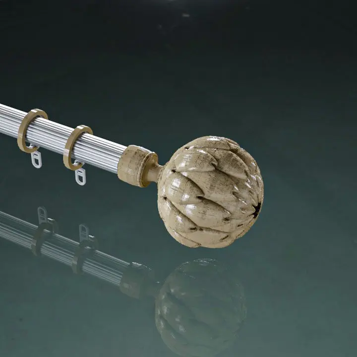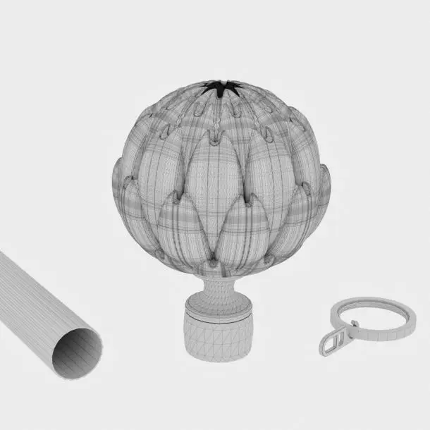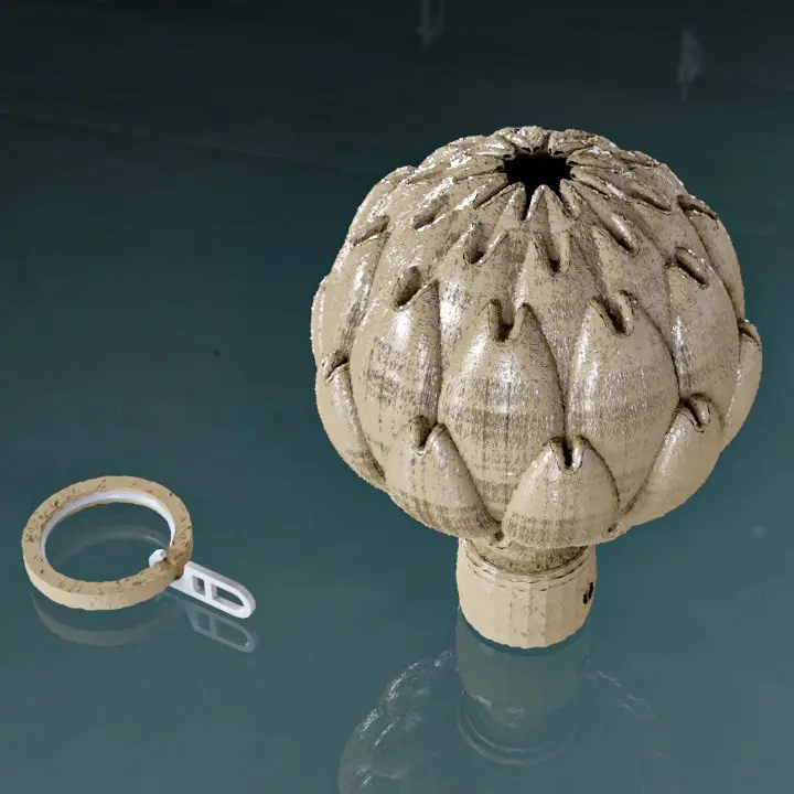 Finial for curtain rods. ARTICHOKE.Modern,ArtNouveau style.Selection of the finial can take into consideration fabric pattern style and interior design.Using scaling, the finial can also be used as a separate art object.Size: D71mm,L93mm.