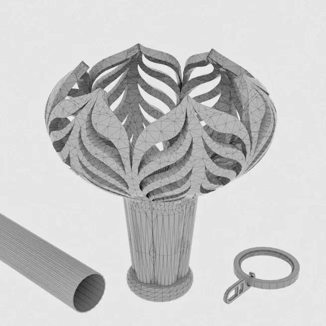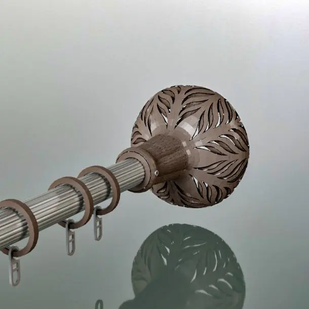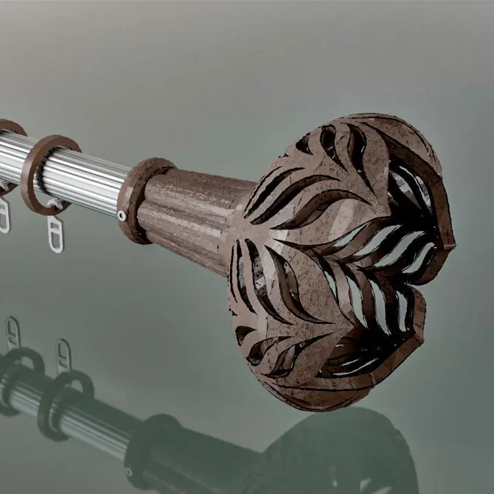 Finial for curtain rods. Modern, ArtNouveau style.Selection of the finial can take into consideration fabric pattern style and interior design.Using scaling, the finial can also be used as a separate art object.Size: D95mm,L105mm.