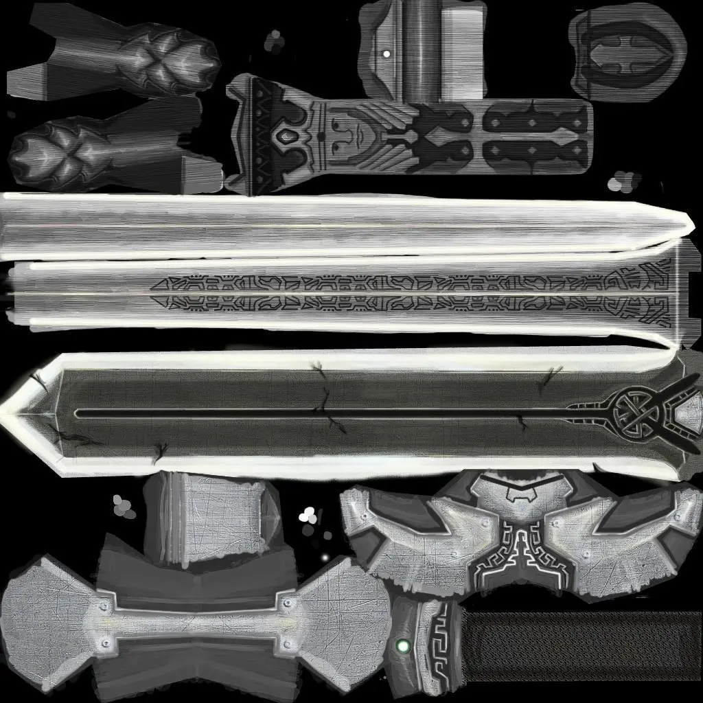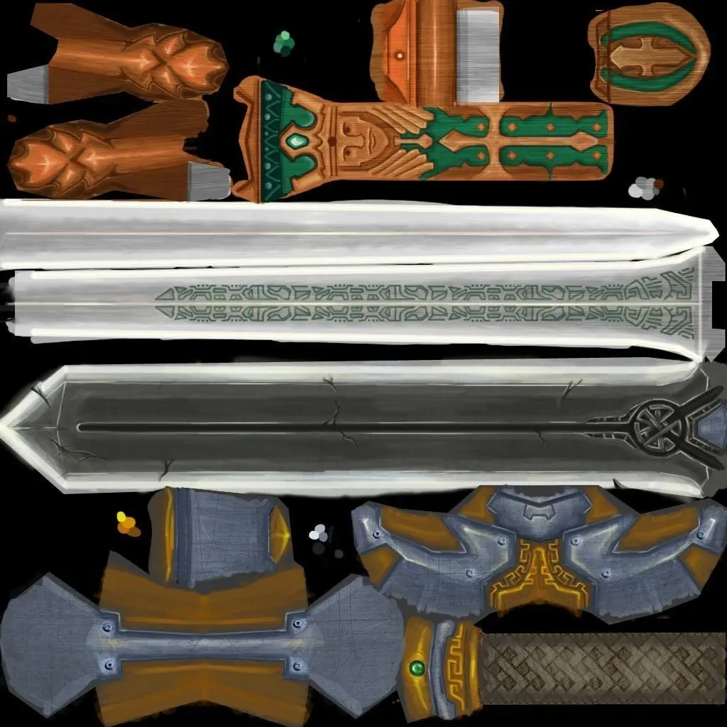 The texture sheets are 1024x1024 or 1024x512. Some textures share multiple swords on one texture sheet.