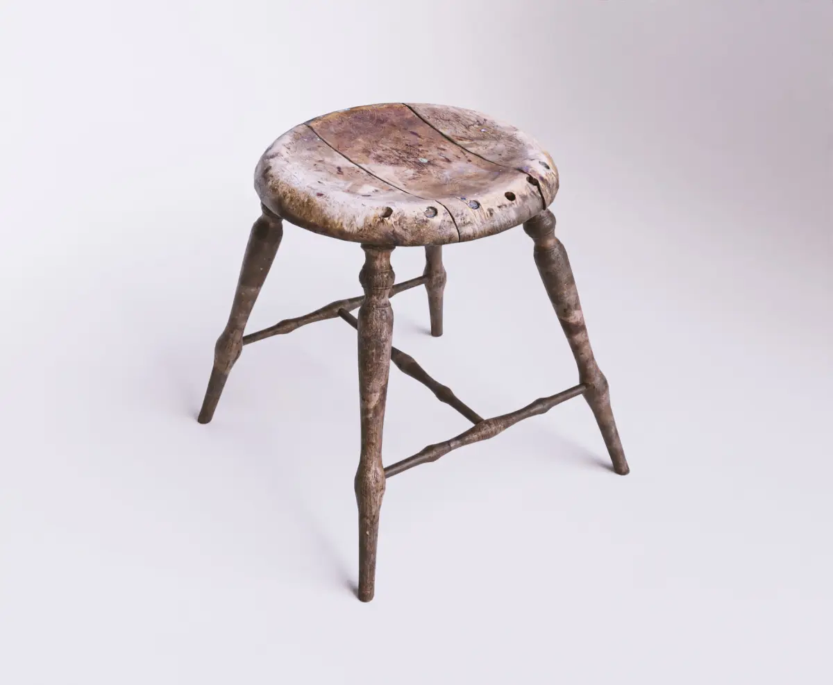 Finnish 1800s Handmade Wooden Stool Free 3D model