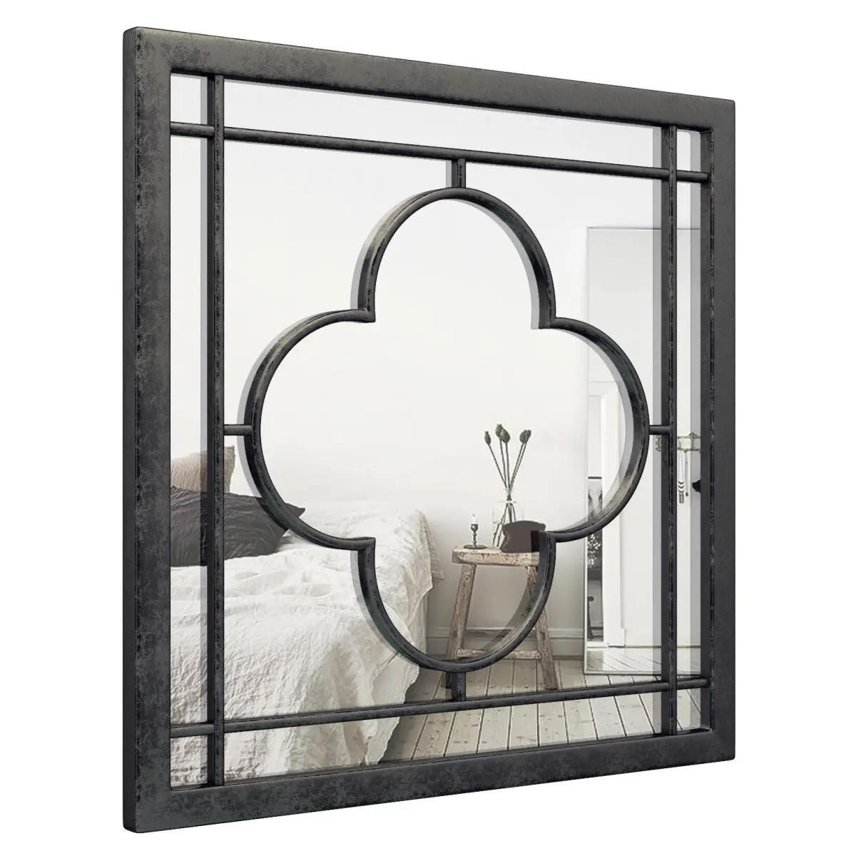 Add light and charm to your empty wall space with this decorative square wall mirror. The square metal frame features a unique cutout overlay that adds decorative interest to the mirror. The classic matte gunmetal finish is sure to complement any style of decor. Open up a small space or create an instant vanity area using this mirror.Features