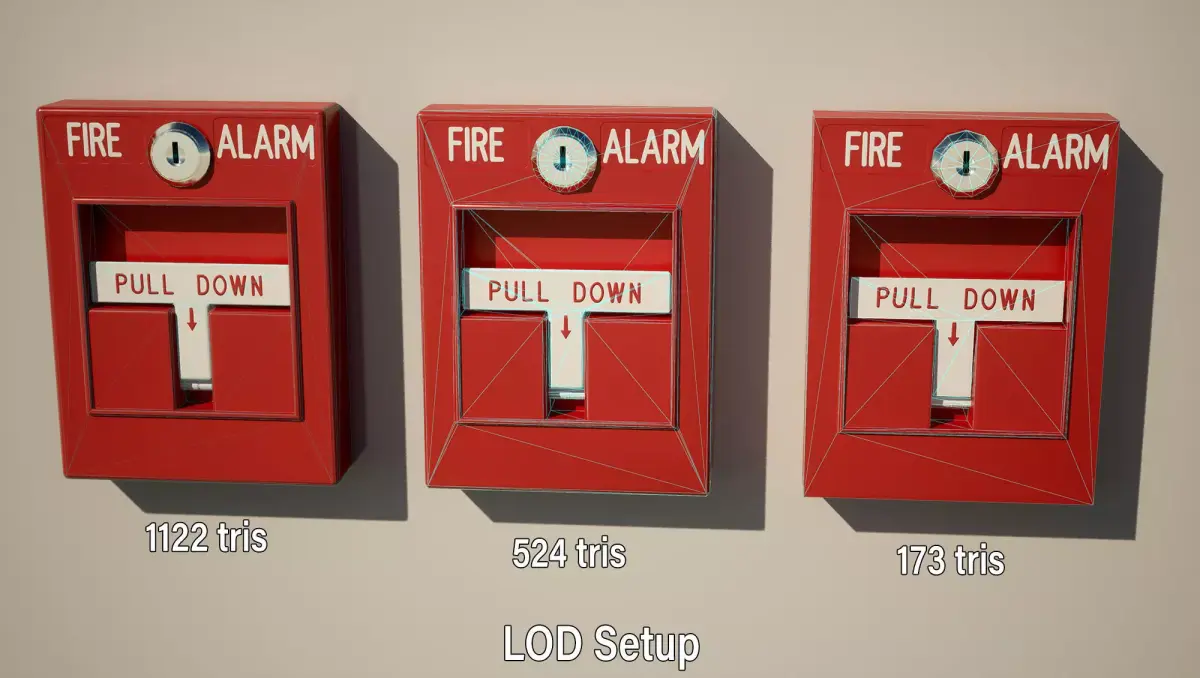 A standard fire alarm, but not what you would typically find. This particular model has two different mesh types, for the cost of one: High poly/Nanite and a low-poly, traditional LOD setup (With 3 levels). Both high poly/Nanite and LOD versions also have two pbr texture sets with different levels of wear depending on your needs: clean or dirty. Includes FBX, OBJ, .TGA textures, Maya, Blender, and Unreal Project. The handle is a separate object that can be animated.