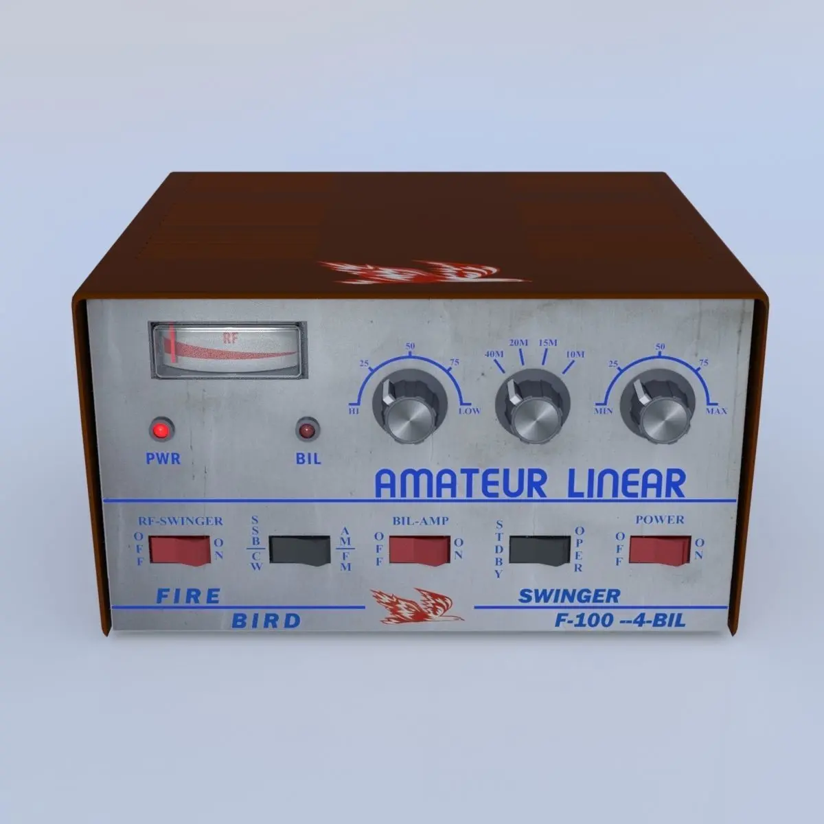 The Fire Bird - Swinger F-100-4-BIL is a heavyweight transmitter booster for the 11 meter band (27mc). With the transmitter you send a certain power into the input and this is amplified several times at the antenna output. This way you get more range for longer distances. I have owned this once and spent many hours with it. Mainly during the night hours because my neighborhood was not happy with all those disturbances.