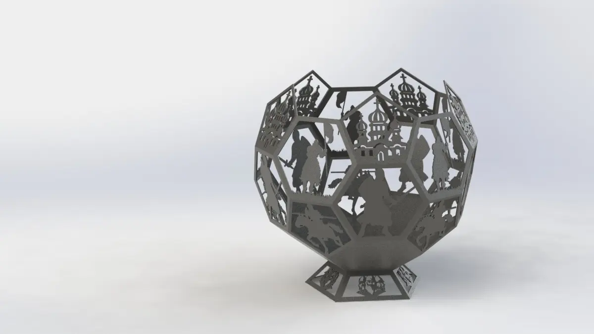 Bowl for fire or fruit. It was originally designed to be made of metal so that a fire would burn in it. But you can use either individual cubes with patterns or make a bowl for fruits, sweets and other things.The collection contains STL files for the entire structure and separately for its parts. Added DXF files for laser manufacturing.