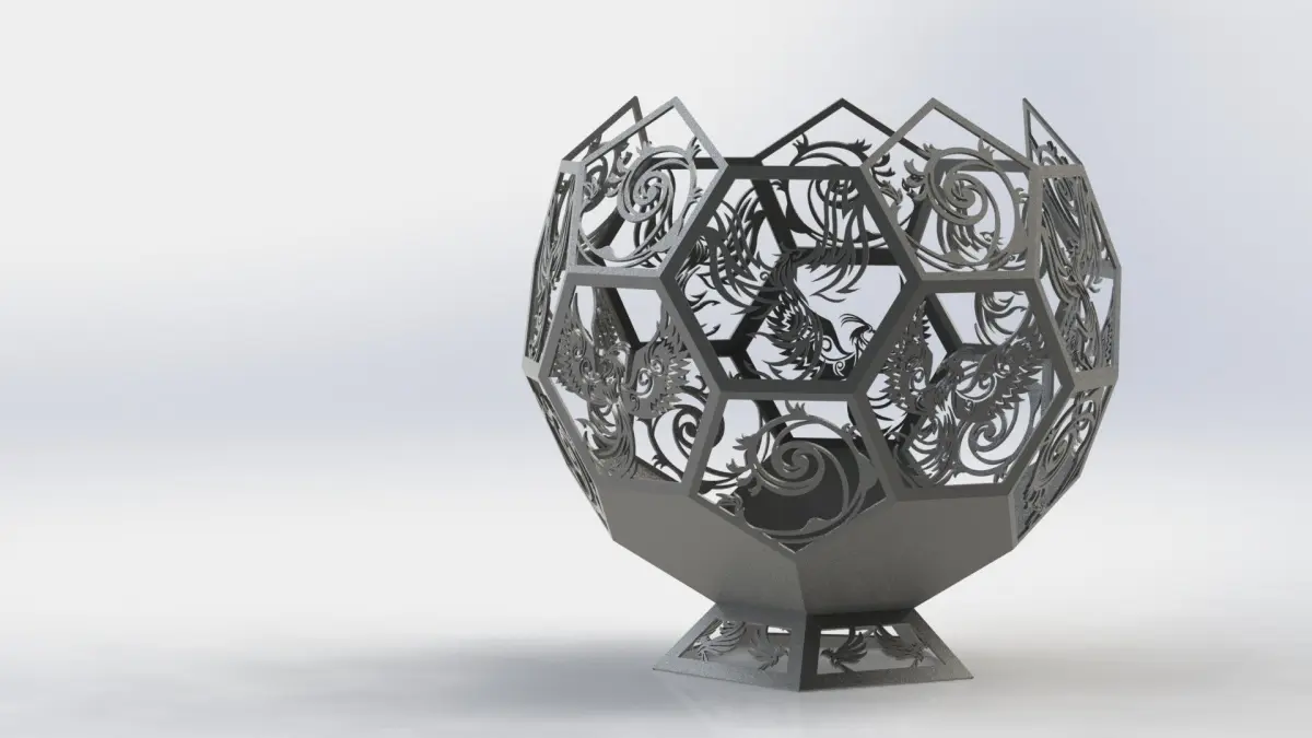 Bowl for fire or fruit. It was originally designed to be made of metal so that a fire would burn in it. But you can use either individual cubes with patterns or make a bowl for fruits, sweets and other things.The collection contains STL files for the entire structure and separately for its parts. Added DXF files for laser manufacturing.